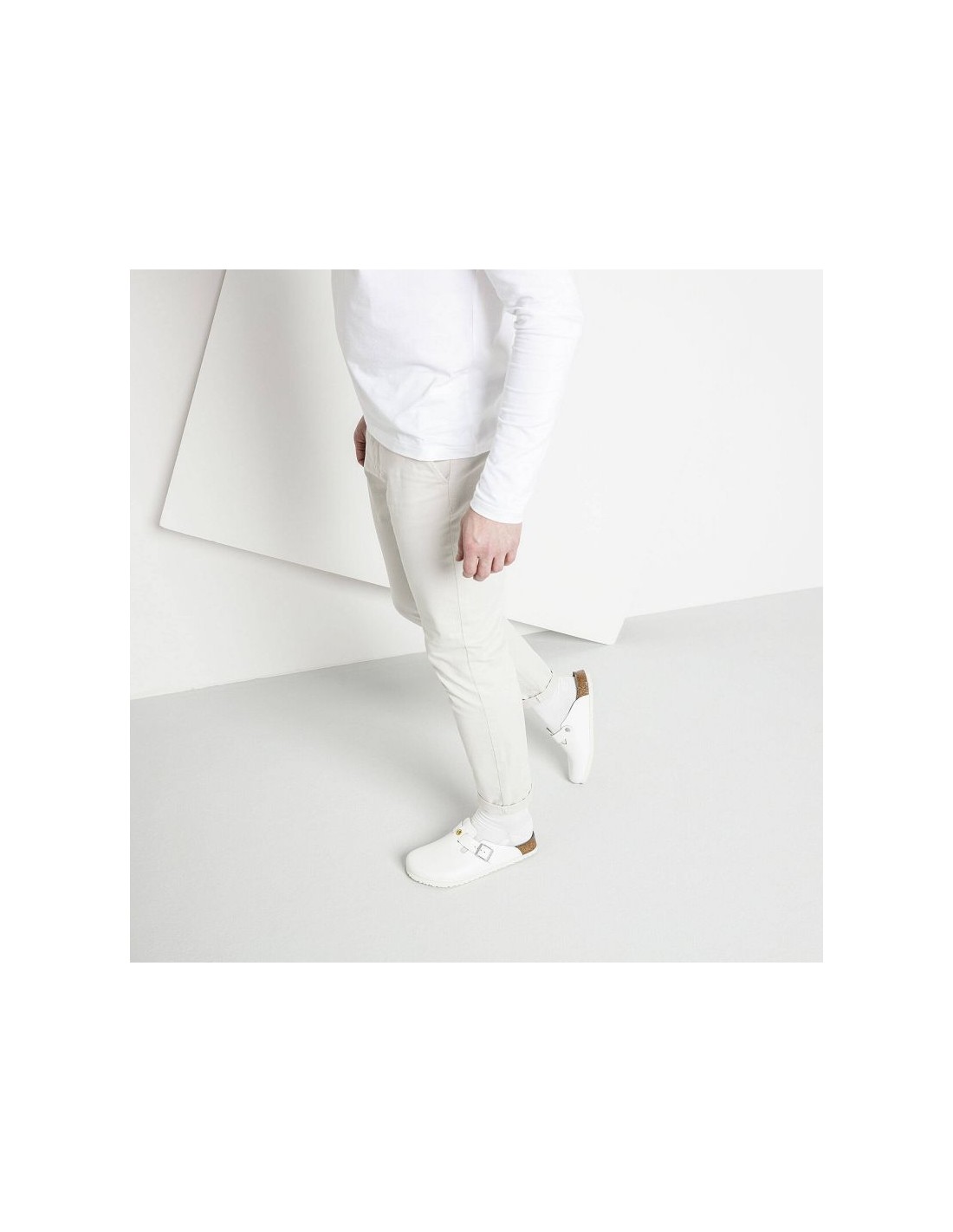 Women\’s Birkenstock Boston ESD White clogs natural leather medical narrow slippers 0061378