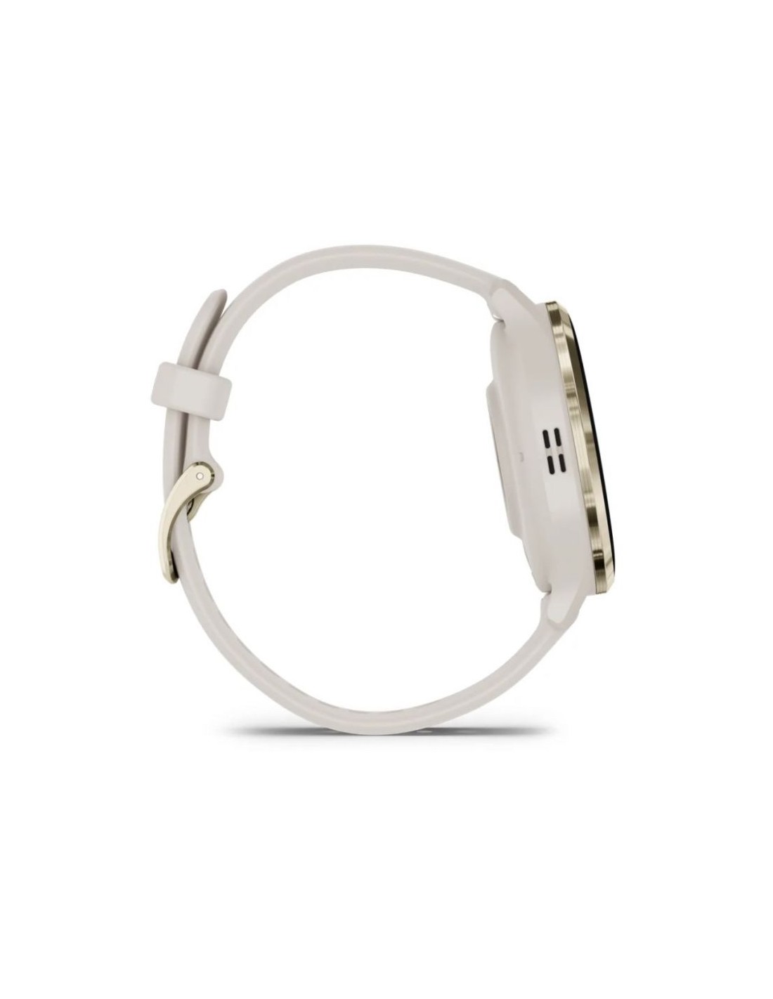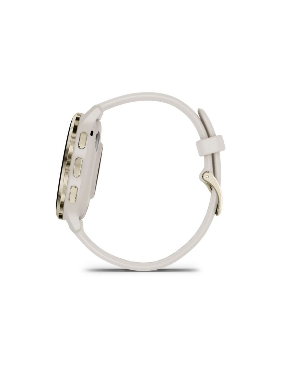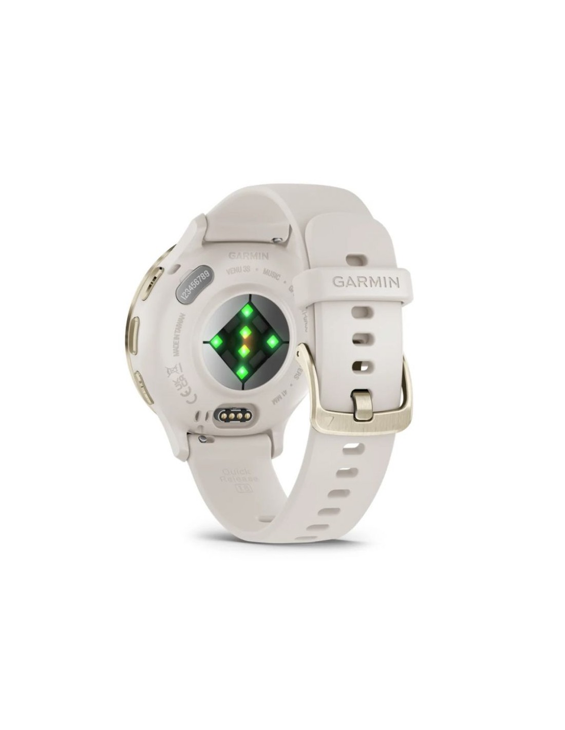 Characteristics Interval training: Yes Recommended activity Yoga Running Pilates Calendar: Yes Ambient light sensor: Yes Find my phone: Yes Electric compass: Yes Blood oxygen sensor: Yes Weather display: Yes Time/Distance Alarm: Yes Activity monitoring: Yes Heart rate-based calorie calculation: Yes Weather forecast: Yes Music control: Yes Barometer: Yes Auto pause: Yes Smart notifications: Yes Fitness Test: Yes Stopwatch: Yes Alarm: Yes Thermometer: Yes Call notifications: Yes Sleep quality: Yes Built-in tape measure: Yes SMS notifications: Yes Gyroscope: Yes Pedometer: Yes Personal Goals: Yes Calories burned: Yes Timer: Yes Workout tracking function: Yes Heart rate monitor: Yes Accelerometer: Yes Design Watch case color Gold Ivory Security features: Waterproof Strap material: Silicone Suggested gender: Unisex Watch case size: 41 mm Market positioning: Smartwatch Shape: Round Housing material: Polymer Water resistance: 5 ATM Detachable strap: Yes Lens material: Glass Maximum strap length: 17.5 cm Wrist size: 110 – 175 mm Strap color: Ivory Minimum strap length: 11 cm Power Battery life (in GPS mode): 21 h Battery life: 10 days Supported battery type: Built-in Weight and dimensions Product width: 41 mm Product depth: 41 mm Thickness: 1.2 cm Product weight: 40 g Network Galileo: Yes ANT+ available: Yes GLONASS: Yes GPS: Yes Efficiency Built-in microphone: Yes Support for mobile operating systems Android iOS Keypad lock: Yes Flash memory: 8 GB Built-in speakers: Yes Built-in camera: No Display Touchscreen: Yes Screen diagonal: 1.2\” Resolution: 390 x 390 px Color display: Yes Glass type: Corning Gorilla Glass 3 Display diameter: 3.04 cm Display type: Digital Display technology: AMOLED Ports and interfaces Bluetooth: Yes USB port: No Wi-Fi: Yes