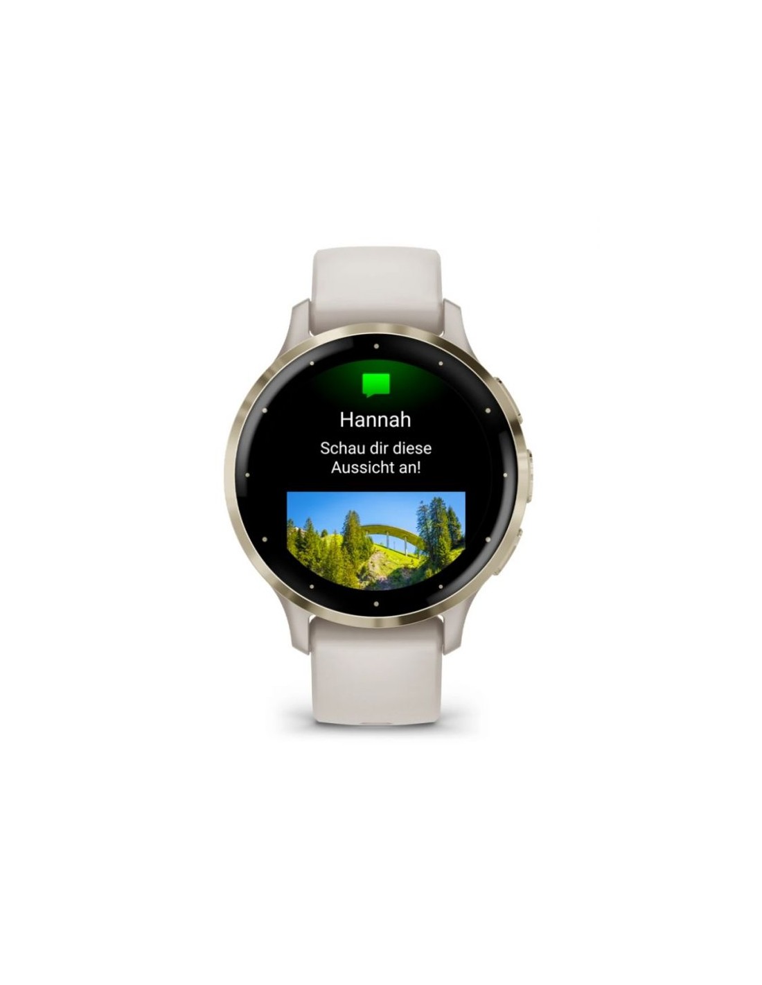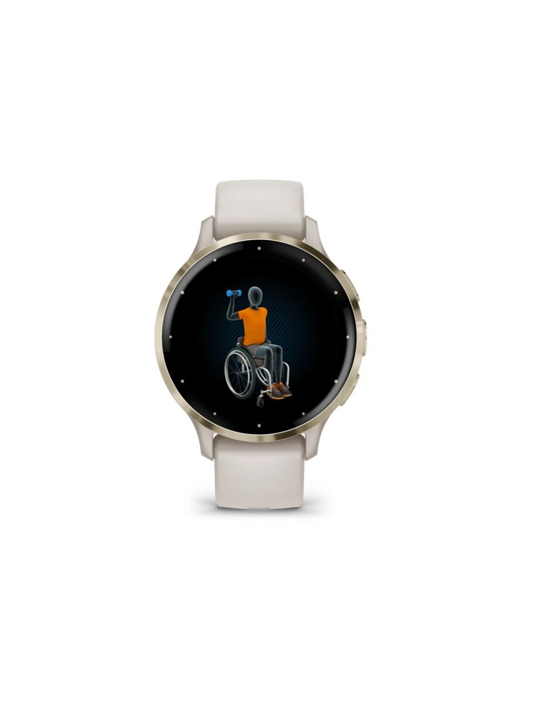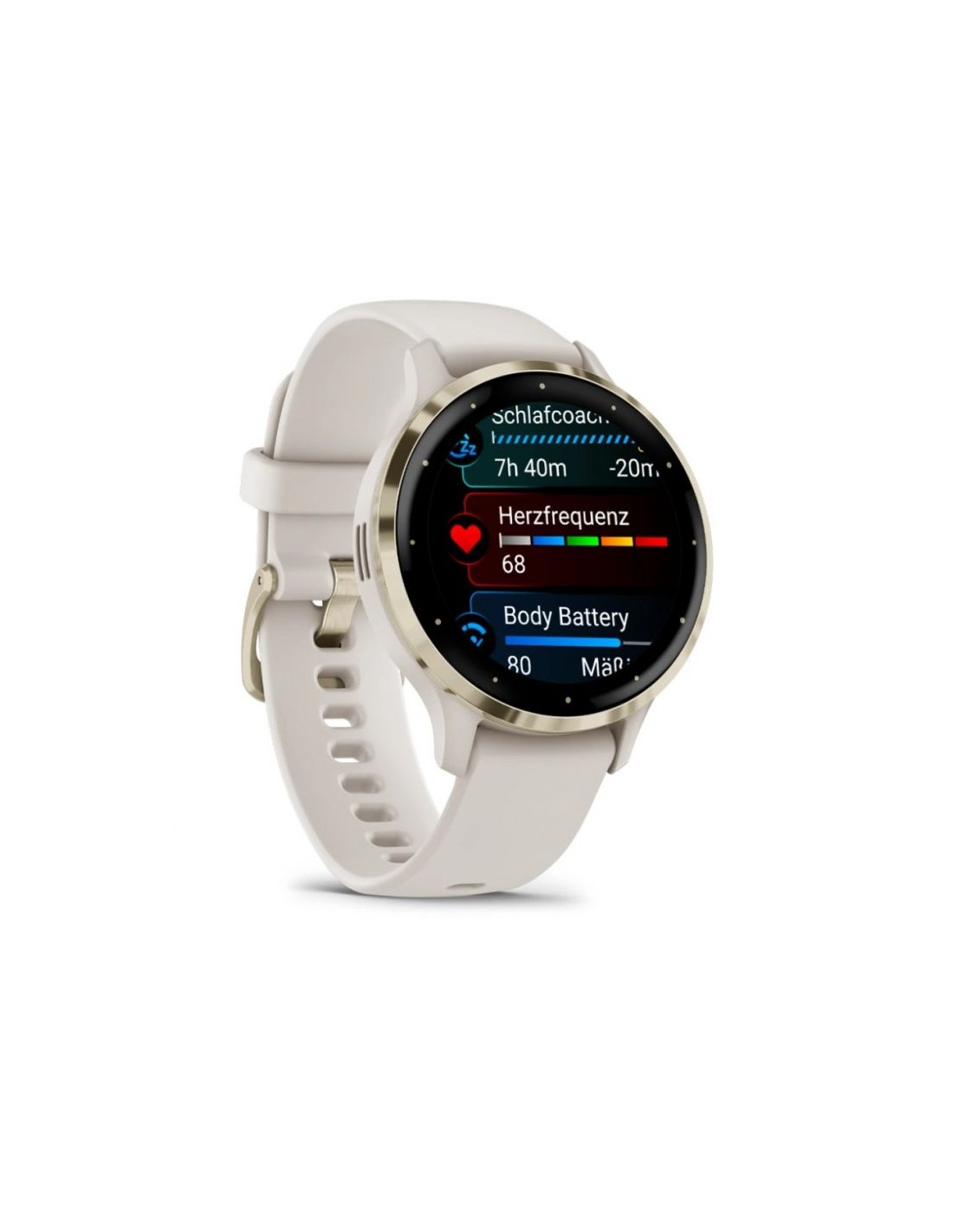 Characteristics Interval training: Yes Recommended activity Yoga Running Pilates Calendar: Yes Ambient light sensor: Yes Find my phone: Yes Electric compass: Yes Blood oxygen sensor: Yes Weather display: Yes Time/Distance Alarm: Yes Activity monitoring: Yes Heart rate-based calorie calculation: Yes Weather forecast: Yes Music control: Yes Barometer: Yes Auto pause: Yes Smart notifications: Yes Fitness Test: Yes Stopwatch: Yes Alarm: Yes Thermometer: Yes Call notifications: Yes Sleep quality: Yes Built-in tape measure: Yes SMS notifications: Yes Gyroscope: Yes Pedometer: Yes Personal Goals: Yes Calories burned: Yes Timer: Yes Workout tracking function: Yes Heart rate monitor: Yes Accelerometer: Yes Design Watch case color Gold Ivory Security features: Waterproof Strap material: Silicone Suggested gender: Unisex Watch case size: 41 mm Market positioning: Smartwatch Shape: Round Housing material: Polymer Water resistance: 5 ATM Detachable strap: Yes Lens material: Glass Maximum strap length: 17.5 cm Wrist size: 110 – 175 mm Strap color: Ivory Minimum strap length: 11 cm Power Battery life (in GPS mode): 21 h Battery life: 10 days Supported battery type: Built-in Weight and dimensions Product width: 41 mm Product depth: 41 mm Thickness: 1.2 cm Product weight: 40 g Network Galileo: Yes ANT+ available: Yes GLONASS: Yes GPS: Yes Efficiency Built-in microphone: Yes Support for mobile operating systems Android iOS Keypad lock: Yes Flash memory: 8 GB Built-in speakers: Yes Built-in camera: No Display Touchscreen: Yes Screen diagonal: 1.2\” Resolution: 390 x 390 px Color display: Yes Glass type: Corning Gorilla Glass 3 Display diameter: 3.04 cm Display type: Digital Display technology: AMOLED Ports and interfaces Bluetooth: Yes USB port: No Wi-Fi: Yes