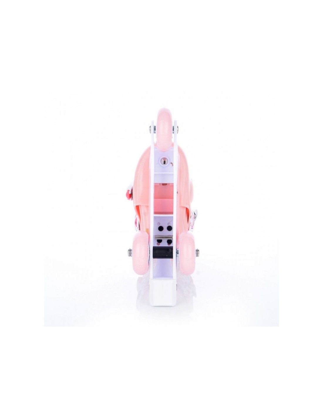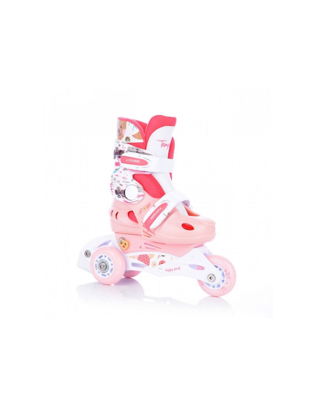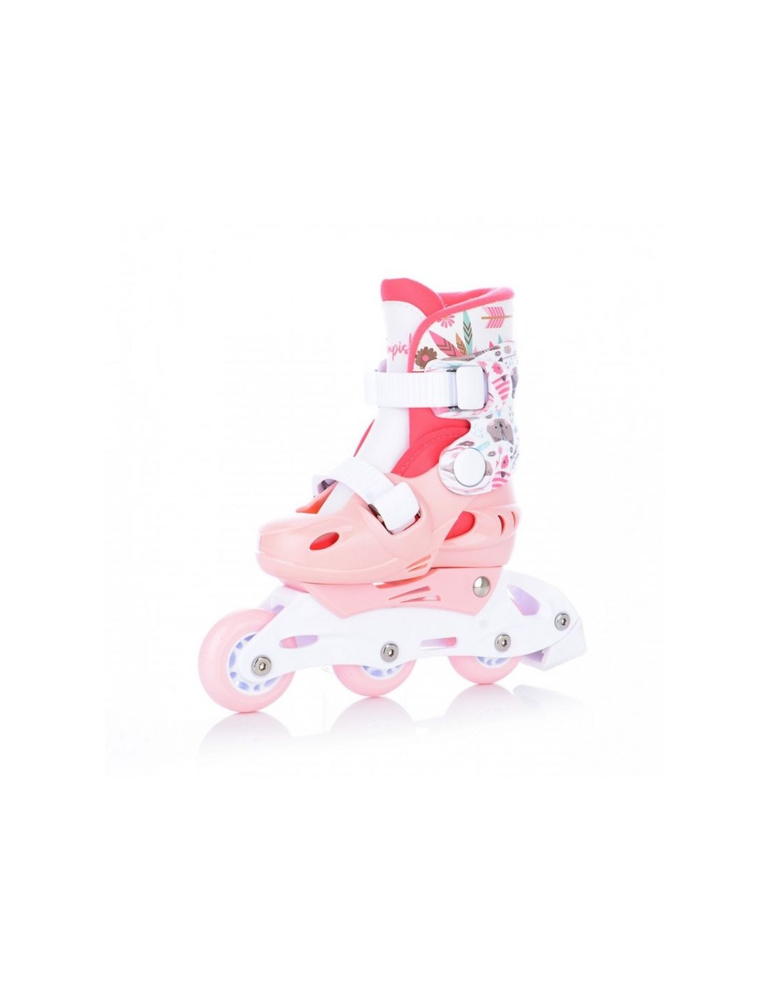 TEMPISH Baby Skate Wild ρυθμιζόμενα πατίνια Αυτή είναι η τέλεια λύση για τα κορίτσια που κάνουν τα πρώτα τους βήματα (ή μάλλον ρόδες) στον κόσμο του πατινάζ με ρολό! Αυτό το κοριτσίστικο σετ περιλαμβάνει όλα όσα χρειάζεστε για μια ασφαλή και άνετη βόλτα: ένα ζευγάρι πατίνια, ένα κράνος και τρία σετ προστατευτικών (γόνατα, αγκώνες, καρποί). Όλα τα στοιχεία του σετ μπορούν να αποθηκευτούν και να μεταφερθούν άνετα στο σακίδιο πλάτης που περιλαμβάνεται. Κύρια χαρακτηριστικά: Τα κύρια χαρακτηριστικά του πακέτου είναι τα εξής: Αθλητικό πατίνι, το οποίο περιλαμβάνει ένα πατίνι για το οποίο θα πρέπει να είναι έτοιμο για χρήση: Πατίνια: Διαθέτουν ένα απλό και βολικό σύστημα ρύθμισης μεγέθους, το οποίο επιτρέπει την προσαρμογή τους σε έως και 4 μεγέθη. Επιπλέον, τα πατίνια μπορούν να ρυθμιστούν σε μια πιο σταθερή επιλογή διπλασιάζοντας τους πίσω τροχούς, κάτι που είναι ιδιαίτερα χρήσιμο για αρχάριους. Τροχοί: Για τα μεγέθη XS, (μόνο 3 τροχοί είναι αρκετοί για ένα κοντό σασί). Διάμετρος βίδας: 6mm, μήκος 33mm. Κράνος: XS: Περιφέρεια κεφαλής 48-51cm. Προστατευτικά: Τρία σετ προστατευτικών για γόνατα, αγκώνες και καρπούς, που παρέχουν πλήρη προστασία κατά την εκμάθηση του πατινάζ. Σακίδιο πλάτης: Ένα πρακτικό σακίδιο πλάτης που επιτρέπει την εύκολη αποθήκευση και μεταφορά ολόκληρου του σετ. Μέγεθος: 26-29 (μήκος εσωτερικού ενθέματος: 17,0-20,5cm) Το σετ WILD BABY SKATE είναι ένα πλήρες σετ για την εκμάθηση πατινάζ με ρολό για τους μικρότερους. Περιέχει όλα τα απαραίτητα για να διασφαλιστεί η ασφάλεια και η άνεση κατά το πατινάζ: ρυθμιζόμενα πατίνια, κράνος και προστατευτικά. Επιπλέον, το πρακτικό σακίδιο πλάτης διευκολύνει την αποθήκευση και τη μεταφορά. Χάρη στη δυνατότητα ρύθμισης του μεγέθους και σταθεροποίησης των κυλίνδρων με διπλασιασμό των πίσω τροχών, το σετ αποτελεί ιδανική επιλογή για αρχάριους μικρούς πατινέρ ΤΕΧΝΙΚΕΣ ΠΑΡΑΜΕΤΡΟΙ Προβλεπόμενη χρήση Πατινάζ αναψυχής και φυσικής κατάστασης (condition), χαμηλού και μεσαίου φορτίου, για αρχάριους και μέσους χρήστες PP hi-impact frame, πλαίσιο με έλεγχο θέσης Μέγεθος τροχών 3 τροχών μέγεθος XS 64mm Σκληρότητα τροχών 85A Ρουλεμάν 608, Z Σύστημα δεσίματος Κανένα Τύπος | Κάλυμμα κελύφους παπουτσιού Ανθεκτικό σε κρούση PP, PVC, NYLON, 3 τεμαχίων, μαλακό Liner (εσωτερική κάλτσα) Σκληρό NYLON/VINYL – ρυθμιζόμενο, ενισχυμένο με στοιχεία PVC, κατασκευή παπουτσιού μεσαίου ύψους Φρένο Συμπεριλαμβάνεται Κλείσιμο από πάνω Πόρπη Κλείσιμο 45 μοιρών Πόρπη Αξόνες – Όριο βάρους 60 kg