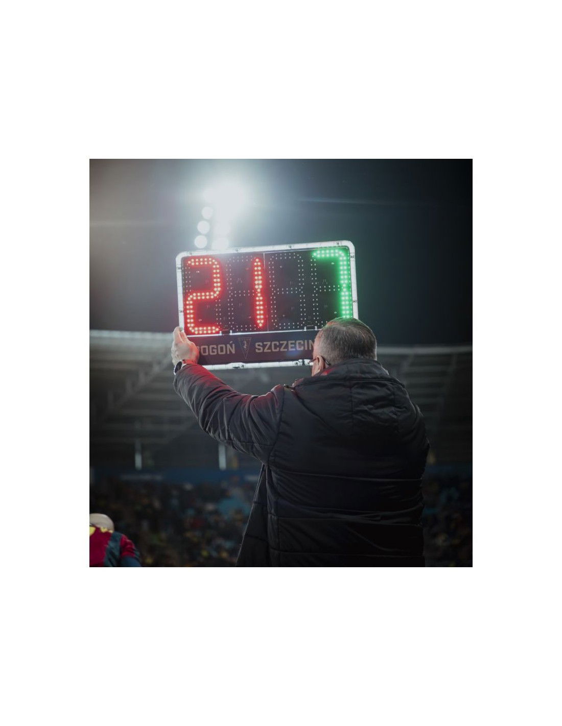 Electronic player substitution board – double-sided model: S04469 INOUT-8 – Double-sided – Letter height: 23.5 cm (visibility about 100 m) – LED diode brightness 6000 cd/m2, lifetime over 2 million views – Colors: green and red – Space for sponsor\’s logo (45×8 cm) – Built-in battery (fully charged, lasts for about 150 views) – Battery check function – Battery safe function (auto shutdown after a long period of inactivity) – Charger included – Dimensions: 55 x 36 x 4 cm – Weight: 3.25 kg – 2-year warranty Product code: 100305