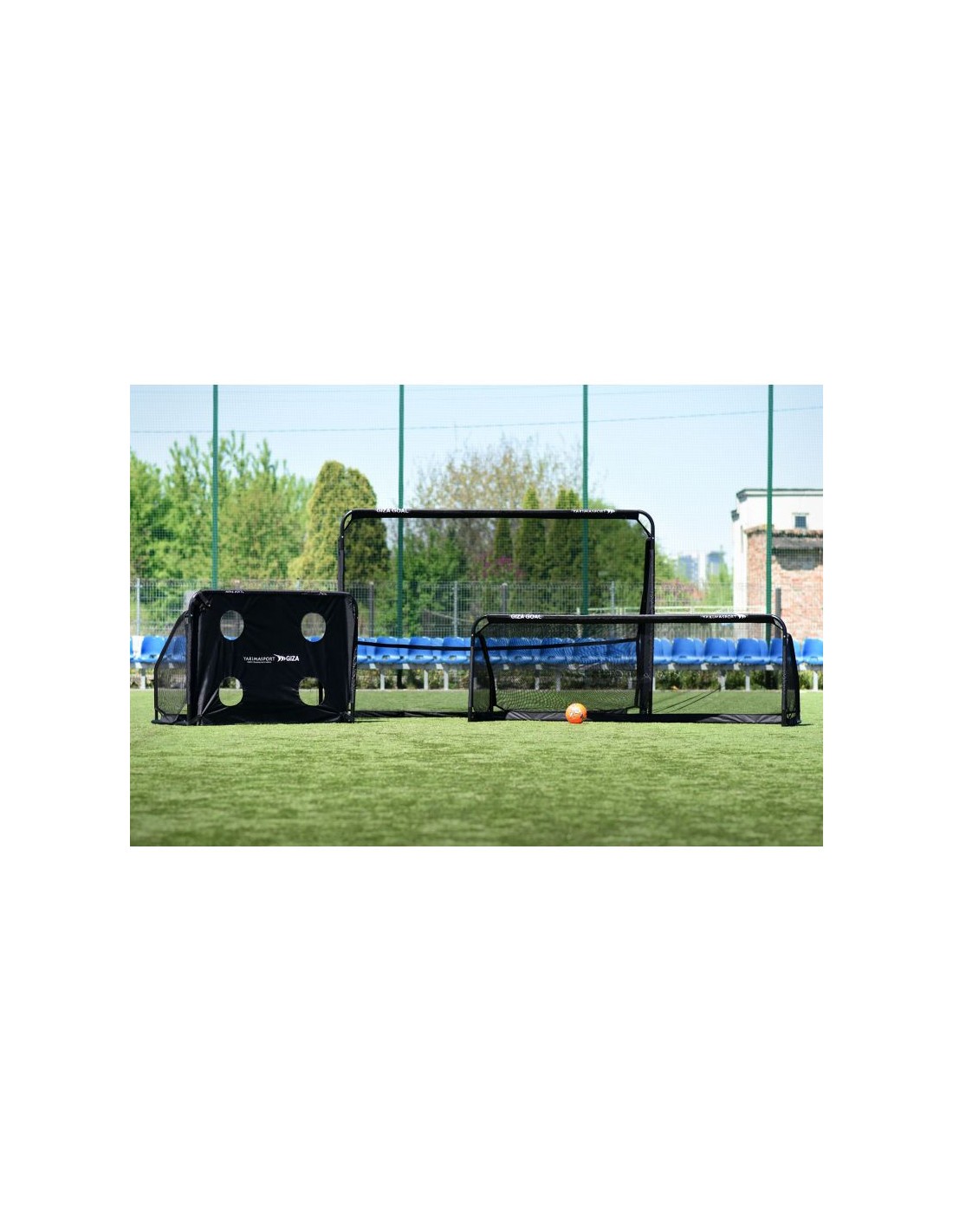 GIZA goal 300cmx100cm PZPN Unification Essential for both soccer training and matches. Soccer goals—because that\’s what we\’re talking about—are a fundamental asset in every club, school sports section, or association. As the Yakimasport brand, we\’ve prepared high-quality goals and accessories. Together, they allow for engaging training sessions and exciting matches. The proposed GIZA soccer goal, measuring 3m x 1m, is designed for both professional and amateur use. It\’s perfect for applications requiring durability, functionality, and a wide range of applications. The goal is made of materials that meet stringent standards and are resistant to mechanical damage. Drawing on over eleven years of experience, we\’ve created a goal that meets the needs of professional athletes and ambitious amateurs. Its key features include: solid steel construction weighted by a reinforced rear frame; dimensions 300cm ? 100cm ? 100 cm; weight around 13 kg. goal net and mounting pegs included goal accepted by the Polish Football Association for competitions in the dwarf age category Importantly, this goal model is part of a larger product family—GIZA. It includes soccer goals made using the same technology, but in different sizes, as well as accessories matching the goals—nets and mats for shooting accuracy training. GIZA from Yakimasport are premium products that will last for many seasons. Used with acclaim by the Football Academies of Cracovia Krakow, Lech Poznan, Pogon Szczecin, Lechia Gdansk, Dynamo Kyiv, Shakhtar Donetsk, Zalgiris Vilnius, and others. Details Brand: Yakimasport Gender: Male, Female Main color: Black Purpose: Football, Recreation Model/product code: 100564 Dimensions: 300 x 100 x 100 cm Manufacturer\’s country of origin: Poland Mesh material: Polyester Finish: Powder coating, galvanized Assembly: Latch system, crossbar and posts screwed together Type: Portable Profile dimensions/diameter: 60 x 60 mm Additional features: Quick assembly Weight: 12 kg Material: Steel Set components: Frame, Mounting anchors, Mesh Product code: 100564