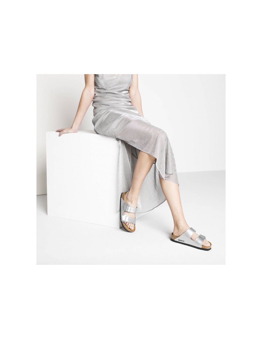Women\’s Birkenstock Silver Arizona BirkoFlor Silver Regular FlipFlops Wide 1012282