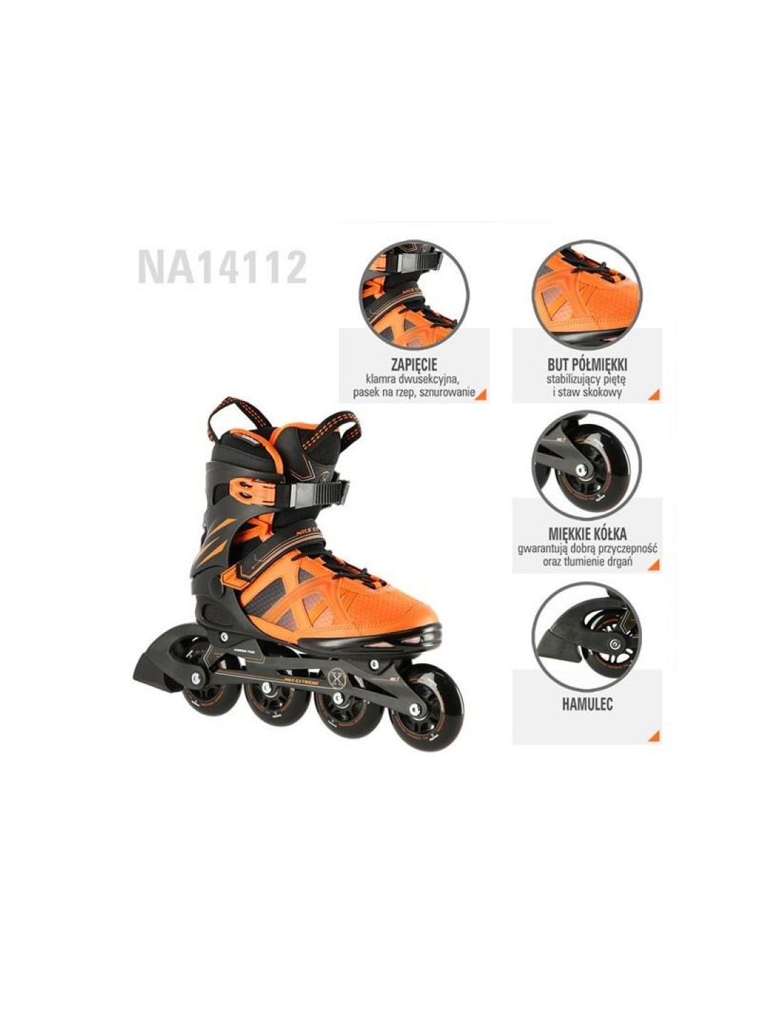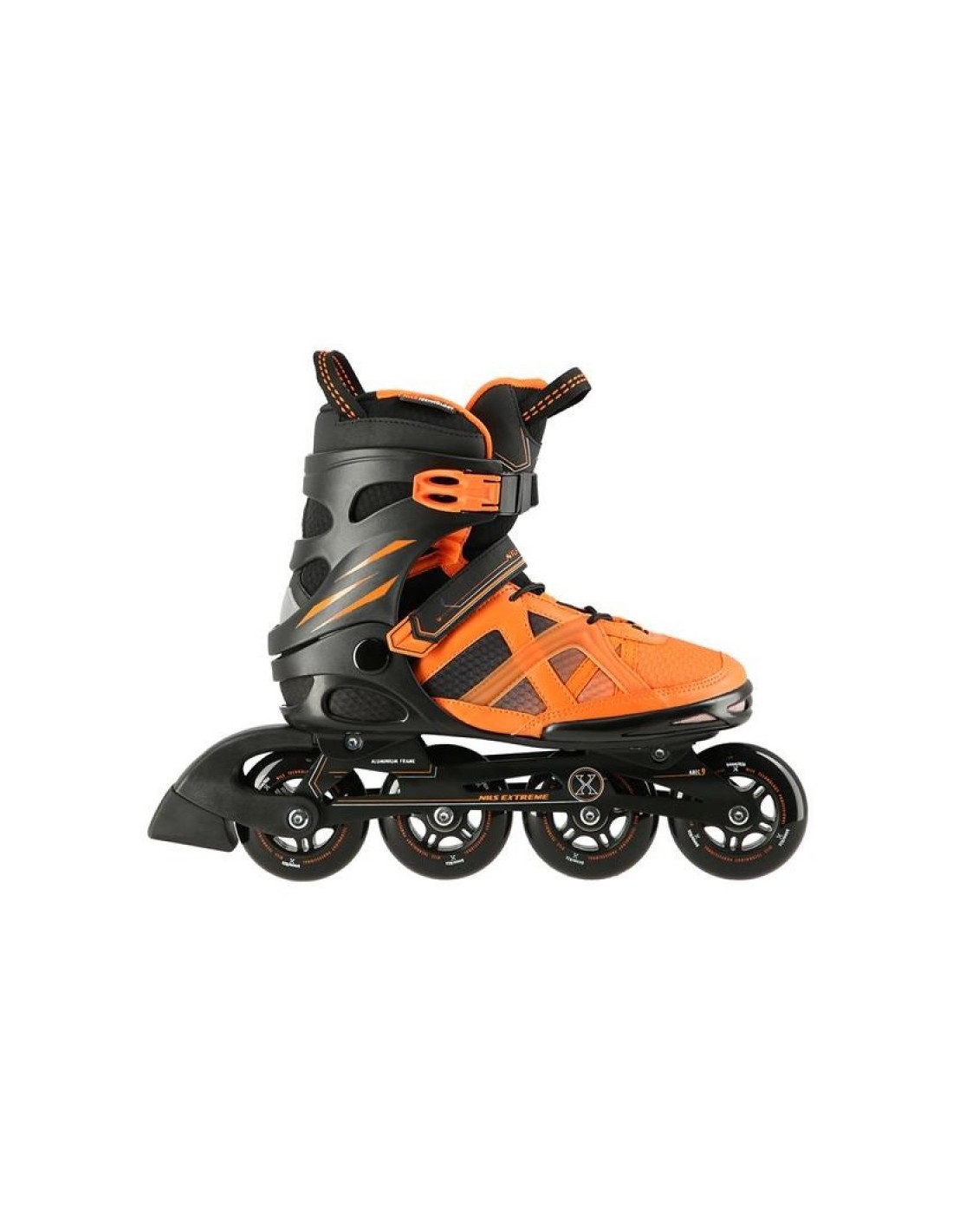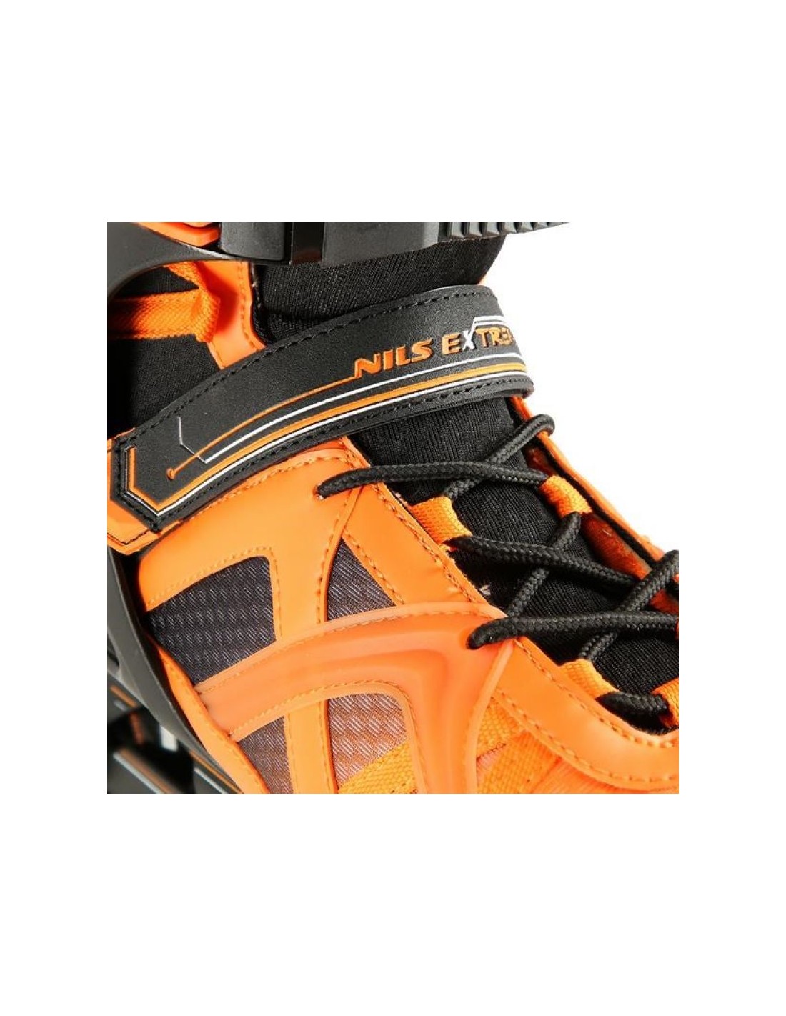 Nils Extreme NA14112 40 Rollerblades Properties: Characteristics Size (European): 40 Wheel color: Black Closure type Snap-on connector Lace-up closure Belt Shoe type: High boot Bearing type: ABEC9 Suitable gender: Unisex Materials EVA, Foam Synthetic leather Product color Orange Black Target group: Universal Model: City roller skates