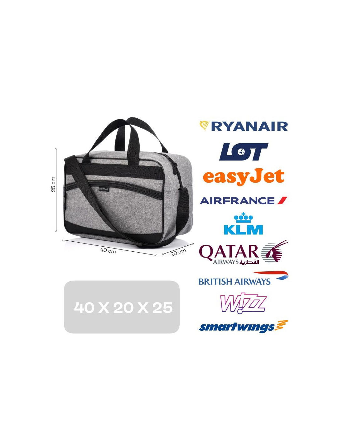 - Εξοικονομήστε χρόνο και χρήμα – χάρη στο ειδικό μέγεθός της, η τσάντα πληροί τις απαιτήσεις των περισσότερων αεροπορικών εταιρειών για χειραποσκευές. Αυτό θα σας επιτρέψει να αποφύγετε τα πρόσθετα έξοδα για επιπλέον αποσκευές και τη μεγάλη αναμονή για να παραλάβετε τις αποσκευές σας μετά την προσγείωση.