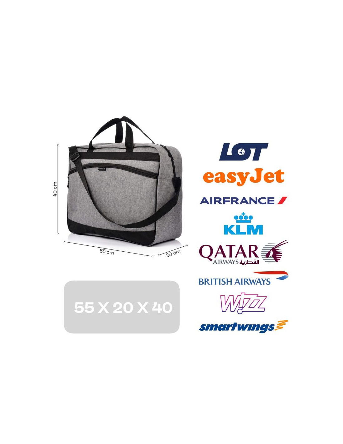- Due to its compact dimensions of 55x20x40cm, the bag meets carry-on luggage requirements. It also doesn\’t take up much space when packed and folded.