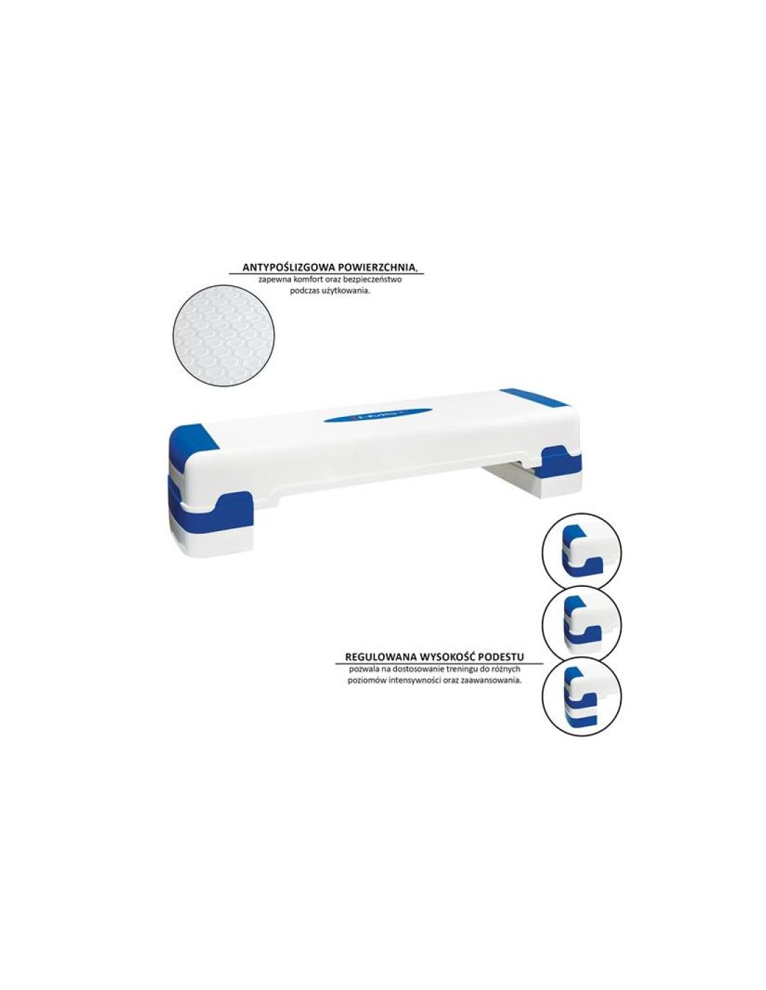 - Η ρύθμιση ύψους σε 3 βήματα σημαίνει ότι μπορείτε να προσαρμόσετε τέλεια το AS005 HMS στις προσδοκίες, τις δεξιότητες ή τις συγκεκριμένες ασκήσεις σας. Η αντιολισθητική επιφάνεια της πλατφόρμας εξασφαλίζει σταθερότητα και ασφάλεια κατά τη διάρκεια της προπόνησης. Με τη σειρά τους, τα λαστιχένια πόδια αποτρέπουν το ανεπιθύμητο πάτημα.