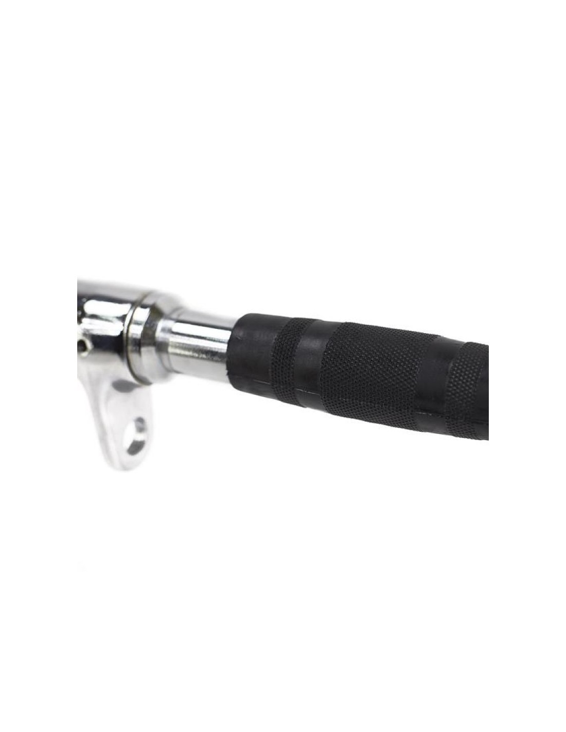 - Κατά τη διάρκεια της προπόνησης, η λαβή επιτρέπει την εμπλοκή εναλλακτικών μυϊκών συνδέσμων σε σύγκριση με τις ασκήσεις σε ευθεία λαβή. Οι ακραίες λαβές που έχουν οριστεί σε ουδέτερη λαβή ευνοούν αυτό. Επιπλέον, είναι λαστιχένιες, γεγονός που εξασφαλίζει μια ασφαλή και άνετη λαβή, χωρίς να φοβάστε ότι το αξεσουάρ θα γλιστρήσει από τα χέρια σας.