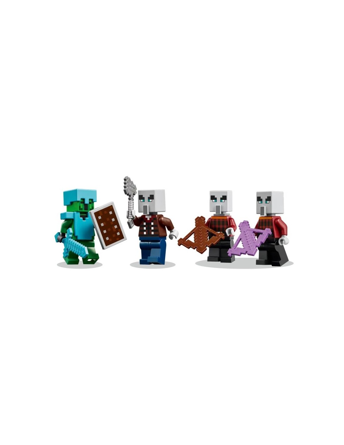 Characteristics Number of minifigures to play with: 4 pcs. Series: Minecraft® Number of elements: 105 Instructions: Yes Recommended age: 7+ years Weight and dimensions Product depth: 60 mm Product height: 80 mm Product width: 110 mm Packaging data Package depth: 45 mm Package height: 138 mm Weight with packaging: 167 g Package width: 190 mm Safety warning Warnings Keep the packaging as it contains important information. Not suitable for children under 3 years of age due to choking hazard from small parts. Use under adult supervision.