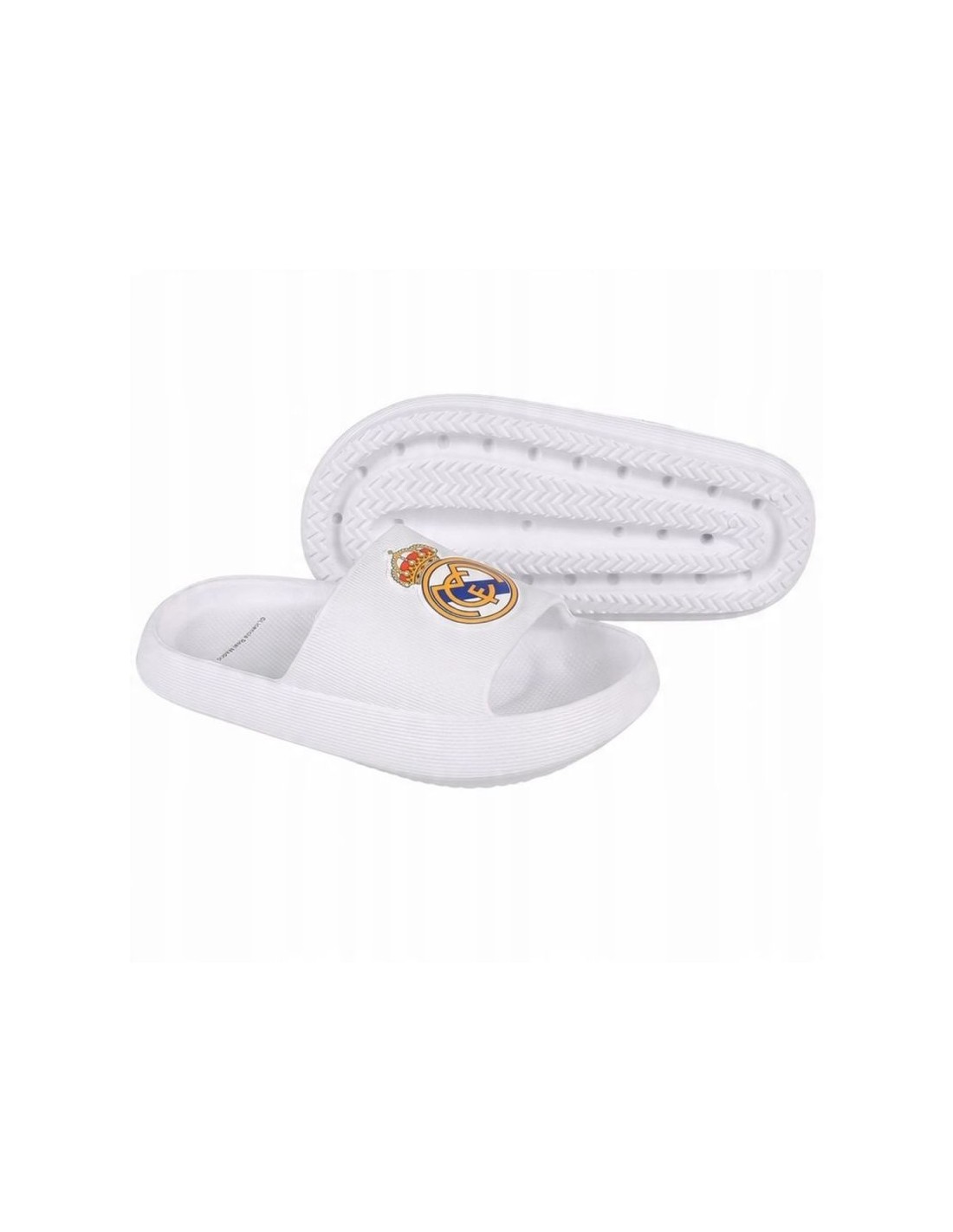 Properties: Continue writing Real Madrid history by dressing your feet in flip-flops that symbolize the club\’s greatness. Officially licensed footwear with a large crest placed centrally. They are perfect for everyday use both at the pool, beach and at home, guaranteeing comfort for your feet. It is worth paying attention to the upper – it is made of EVA foam, which ensures perfect foot positioning. The non-slip sole ensures safety. The flip-flops we offer are made very carefully from high-quality materials and with attention to detail. The presented product has a complete set of manufacturer\’s tags. Material: synthetic material/EVA foam