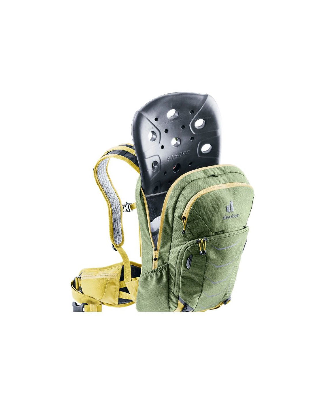 Το Deuter Attack 16 Khaki Turmeric είναι ένα υψηλής ποιότητας ποδηλατικό σακίδιο πλάτης 16 λίτρων εξοπλισμένο με πιστοποιημένο σύστημα προστασίας της πλάτης SAS-TEC, το οποίο απορροφά αποτελεσματικά τις κρούσεις και προστατεύει τη σπονδυλική στήλη σε περίπτωση πτώσης. Κατασκευασμένο από ανθεκτικά, ανθεκτικά στην τριβή υλικά, εξασφαλίζει μακροχρόνια αντοχή.