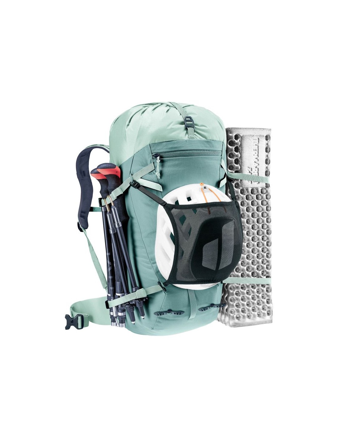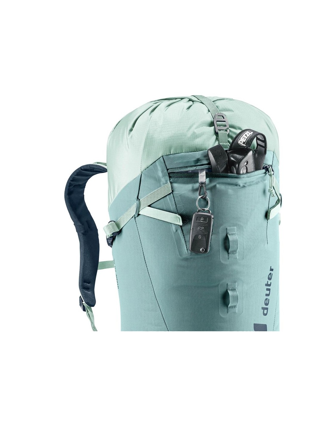 The Deuter Guide 28 SL Jade Frost is a professional mountaineering backpack with a 28-liter capacity, designed specifically for women thanks to its SL (Short Length) carrying system, which fits shorter backs. Ideal for climbing, ski touring, and trekking in challenging terrain, it features the Alpine Back System, which ensures stability and comfort even with a heavier load. It also features ice axe and pole holders, a rope attachment, hydration system compatibility, and a helmet mount. Made of durable, abrasion-resistant materials, the Jade Frost color gives it a modern, sporty look.