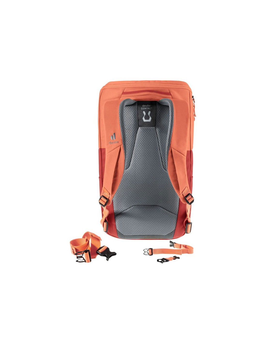 Το Deuter UP Stockholm Redwood Sienna είναι ένα μοντέρνο σακίδιο πλάτης 22 λίτρων κατασκευασμένο από 100% ανακυκλωμένα μπουκάλια PET (περίπου 35 μπουκάλια). Ο φιλικός προς το περιβάλλον σχεδιασμός του συνδυάζει το μινιμαλιστικό design με τη λειτουργικότητα. Το σακίδιο διαθέτει ενισχυμένη πλάτη και εργονομικούς ιμάντες ώμου για άνεση. Η μεγάλη κύρια θήκη χωράει έγγραφα A4, έναν φορητό υπολογιστή 15,6 ιντσών και καθημερινά αξεσουάρ. Ένας εσωτερικός οργανωτής, μια ξεχωριστή θήκη για φορητό υπολογιστή, μια τσέπη για tablet και πλευρικές θήκες για μπουκάλια νερού ενισχύουν την ευκολία. Ο χρωματικός συνδυασμός Redwood Sienna του προσδίδει μια κομψή και μοντέρνα αίσθηση, ιδανική τόσο για τη δουλειά όσο και για την καθημερινή χρήση.
