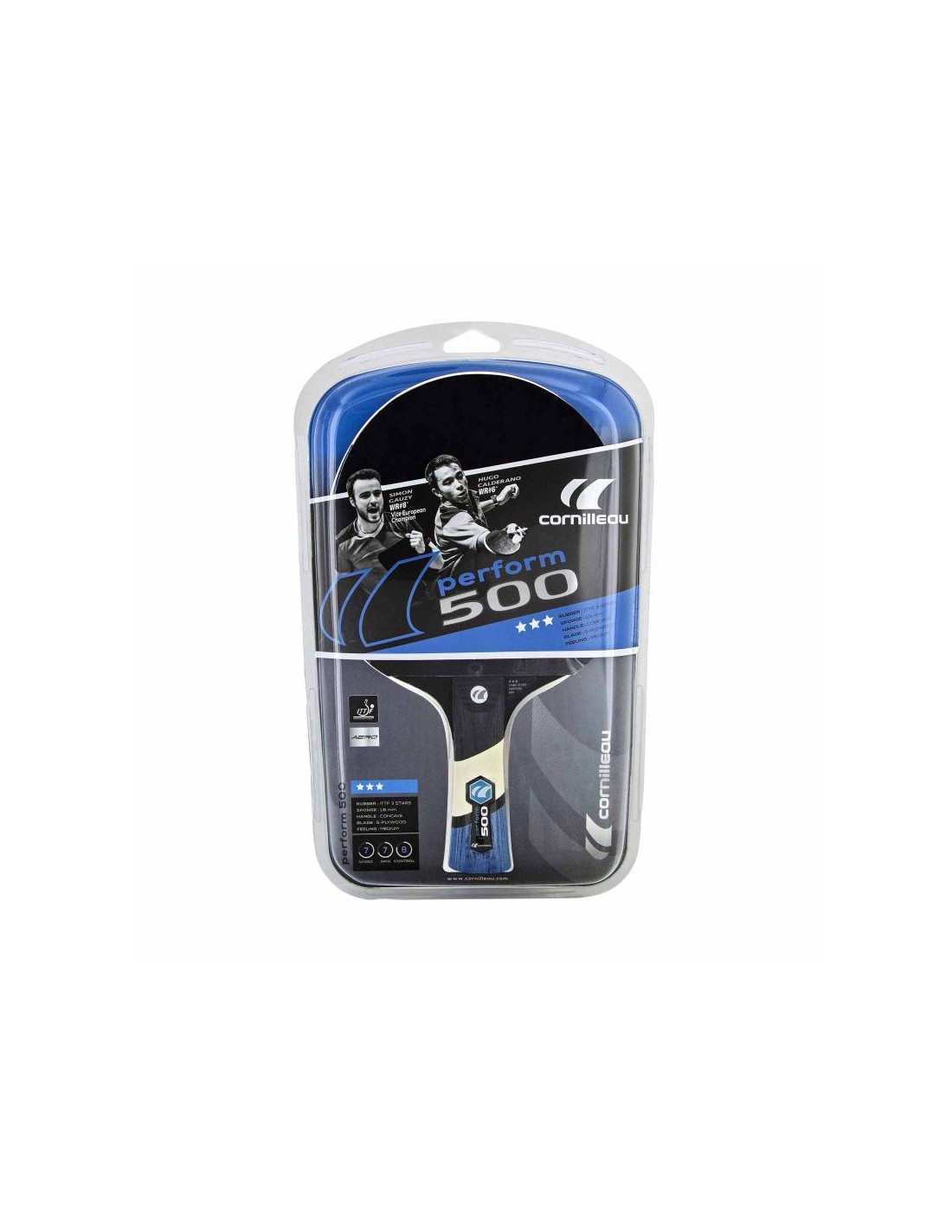Το PERFORM 500 είναι ένα νέο ρόπαλο επιτραπέζιας αντισφαίρισης από τη φημισμένη μάρκα Cornilleau. Η τεχνολογία AERO SOFT που χρησιμοποιείται εξασφαλίζει εξαιρετική επαφή με την μπάλα. Η κατασκευή της σανίδας και της επένδυσης καθώς και οι τεχνολογίες που χρησιμοποιούνται εγγυώνται σταθερή τροχιά και περιστροφή σε κάθε χτύπημα. Πρόκειται για μια εξαιρετική ρακέτα για τακτικό παιχνίδι, η οποία συνιστάται για παίκτες ALL / OFF.