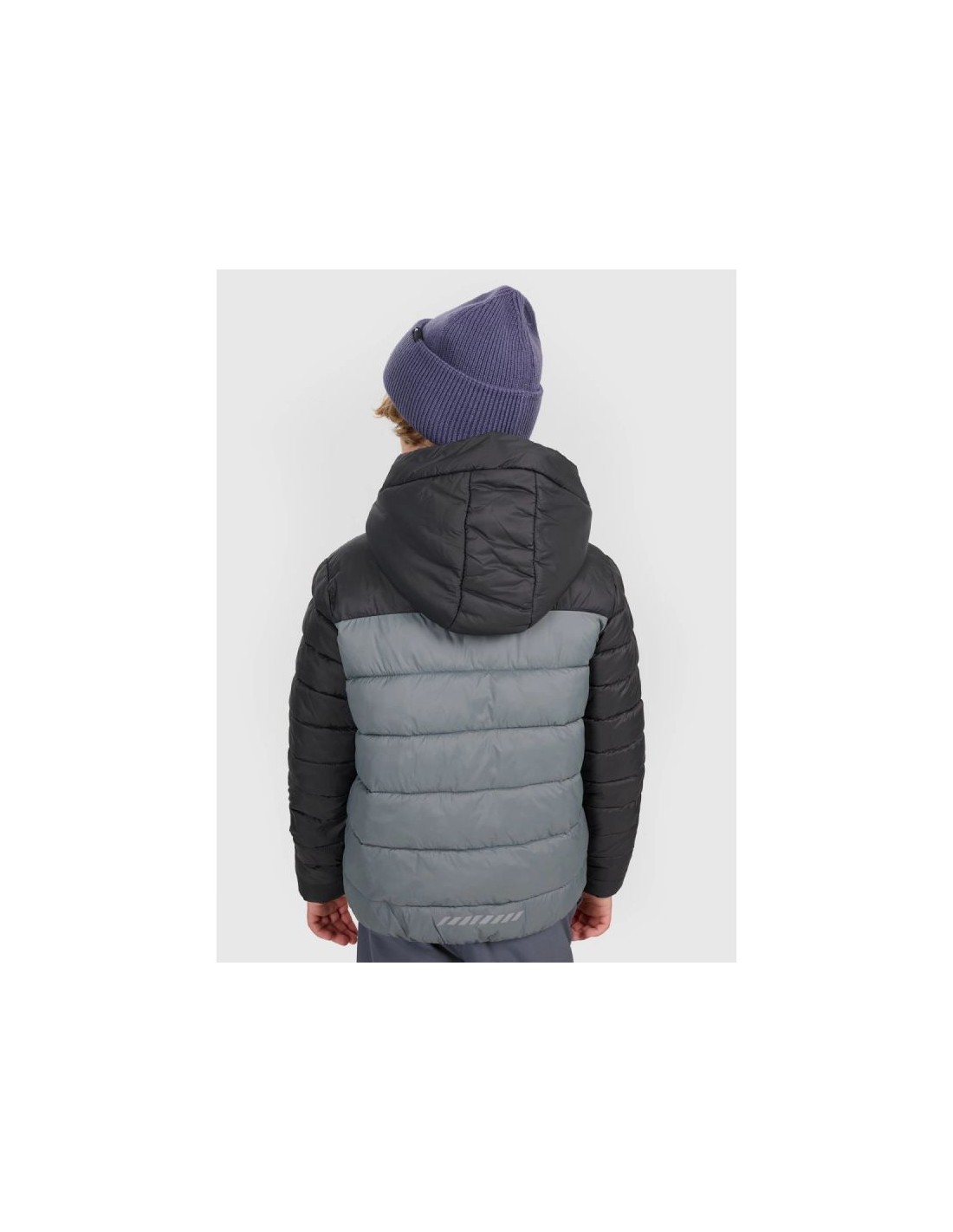 Boys\’ down jacket with synthetic filling – light insulation for colder days This boys\’ down jacket was designed for active children who need a comfortable and functional outer layer during the transitional and winter seasons. The synthetic fill provides effective thermal insulation while maintaining freedom of movement. CHARACTERISTICS: Cut – regular, ensures comfortable use and freedom of movement. Intended use – everyday use: school, walks, outdoor activities in colder conditions. Filling – synthetic, effectively insulating, easy to care for. Hydrophobic coating – limits moisture absorption, which helps maintain thermal comfort even in light humidity. Functional details – integrated hood, full zipper, side pockets, elastic cuffs and hem for better warmth retention. Composition – outer material: polyester; filling: synthetic (exact composition depends on the production batch). Weight – standard insulation suitable for conditions colder than early autumn, but not extreme winter. This model works well as a standalone outer layer or paired with a base layer, such as a fleece or thermal one. Its comfortable fit allows for comfortable everyday wear and outdoor activities. Check also: jackets and vests for boys , trousers for boys