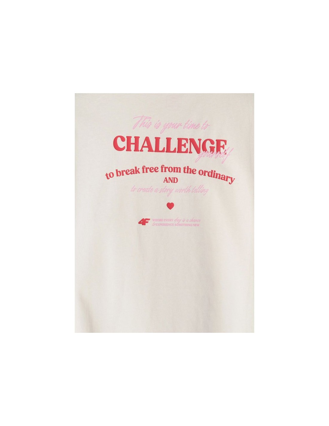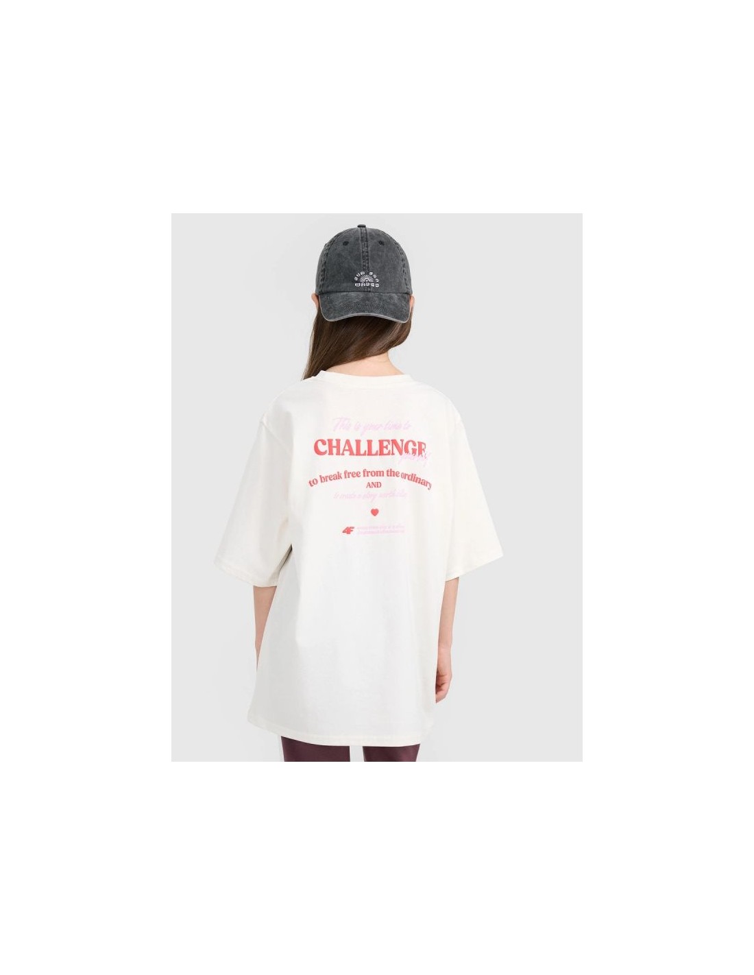 4F oversize girls\’ T-shirt with print – style, comfort and freedom of movement The 4F girls\’ T-shirt is the perfect everyday choice—it combines a fashionable look with maximum comfort. The loose, oversized cut allows for freedom of movement, while the soft cotton jersey ensures a comfortable fit and breathability, even on warmer days. Key features Size range 122-164 – fits a variety of body shapes and ages. Oversize cut – a fashionable, loose design that provides comfort and freedom. Made of 100% cotton – soft, durable and pleasant to the touch. Single jersey fabric – a smooth, flexible surface for increased comfort. Solid colors – easy to match with everyday styles. Round neckline with light ribbed detailing for a classic, durable finish. Print on the front and back – a striking detail emphasizing youthful style. Everyday comfort The 4F girls\’ T-shirt is perfect for active girls who value comfort and style. Natural cotton ensures comfort, while the loose, oversized cut allows for complete freedom of movement. It\’s a perfect choice for school, a walk, or meeting friends.