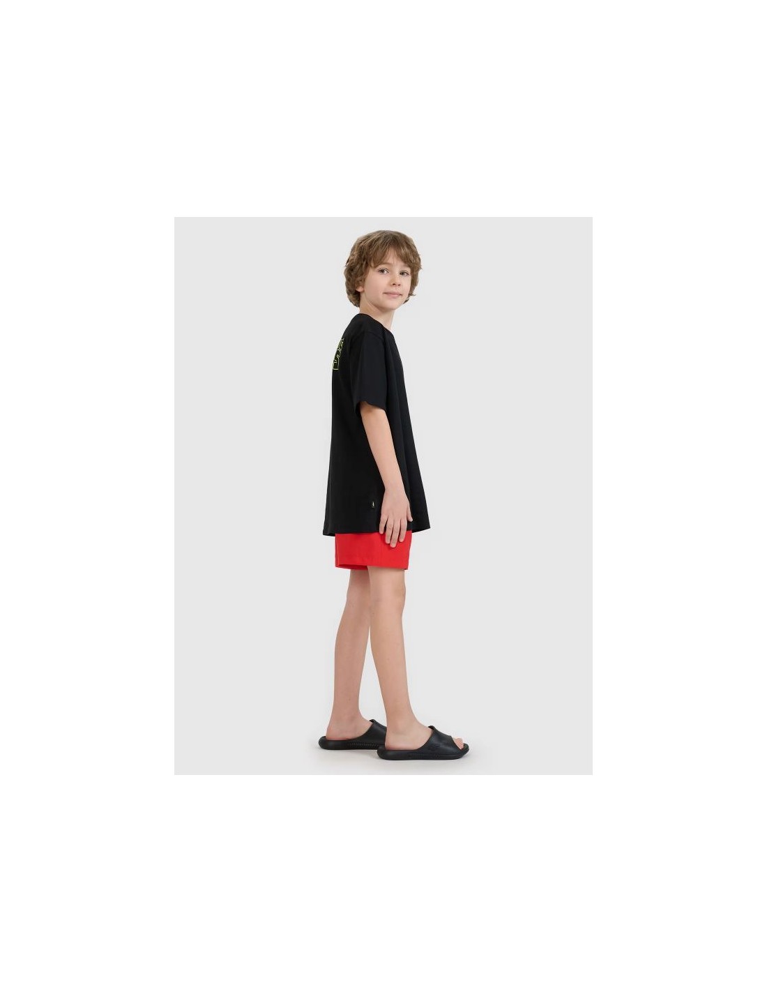 Boys\’ beach shorts – comfort and freedom of movement for summer Boys\’ beach shorts are a great choice for summer – perfect for everyday activities on warm days , beach fun , and recreational swimming . Their relaxed boardshort cut ensures complete comfort and mobility , even during intense activity. Made of durable synthetic material with 6% elastane , the shorts are stretchy , easy to care for, and fit perfectly. Quick-drying fibers help wick moisture away from the body, ensuring they remain comfortable even after swimming. An additional benefit is the mesh lining of the inner briefs , which provides enhanced coverage and ventilation . An elastic waistband with an adjustable drawstring allows for a snug fit, increasing comfort and preventing the shorts from slipping down. Product features – boys boardshorts : Size range 122-164 – perfect fit for children of all ages Loose fit – comfort and freedom of movement 6% elastane – flexibility and comfort during activity Quick-drying material – wicks away moisture, increasing wearing comfort Uniform colors – suitable for many beach styles Mesh inner briefs – better coverage and breathability Waistband with external drawstring – adjustable and better fit Light and functional beach shorts for boys , perfect for summer adventures – from sunbathing to playing in the water.