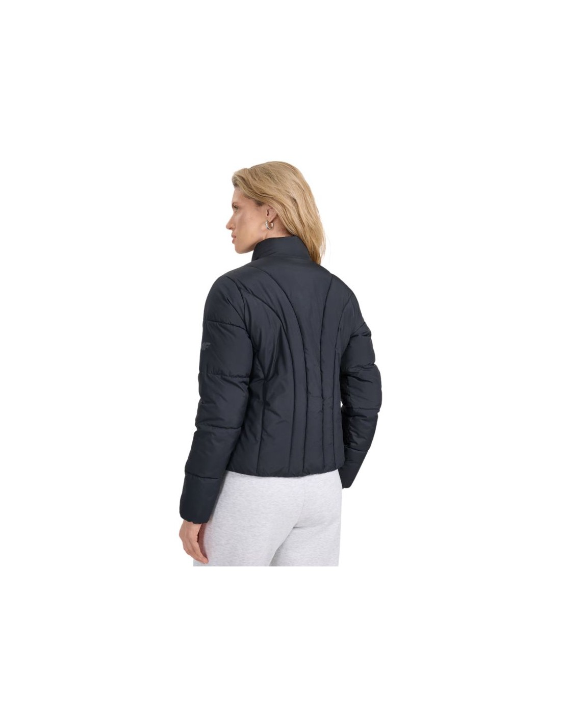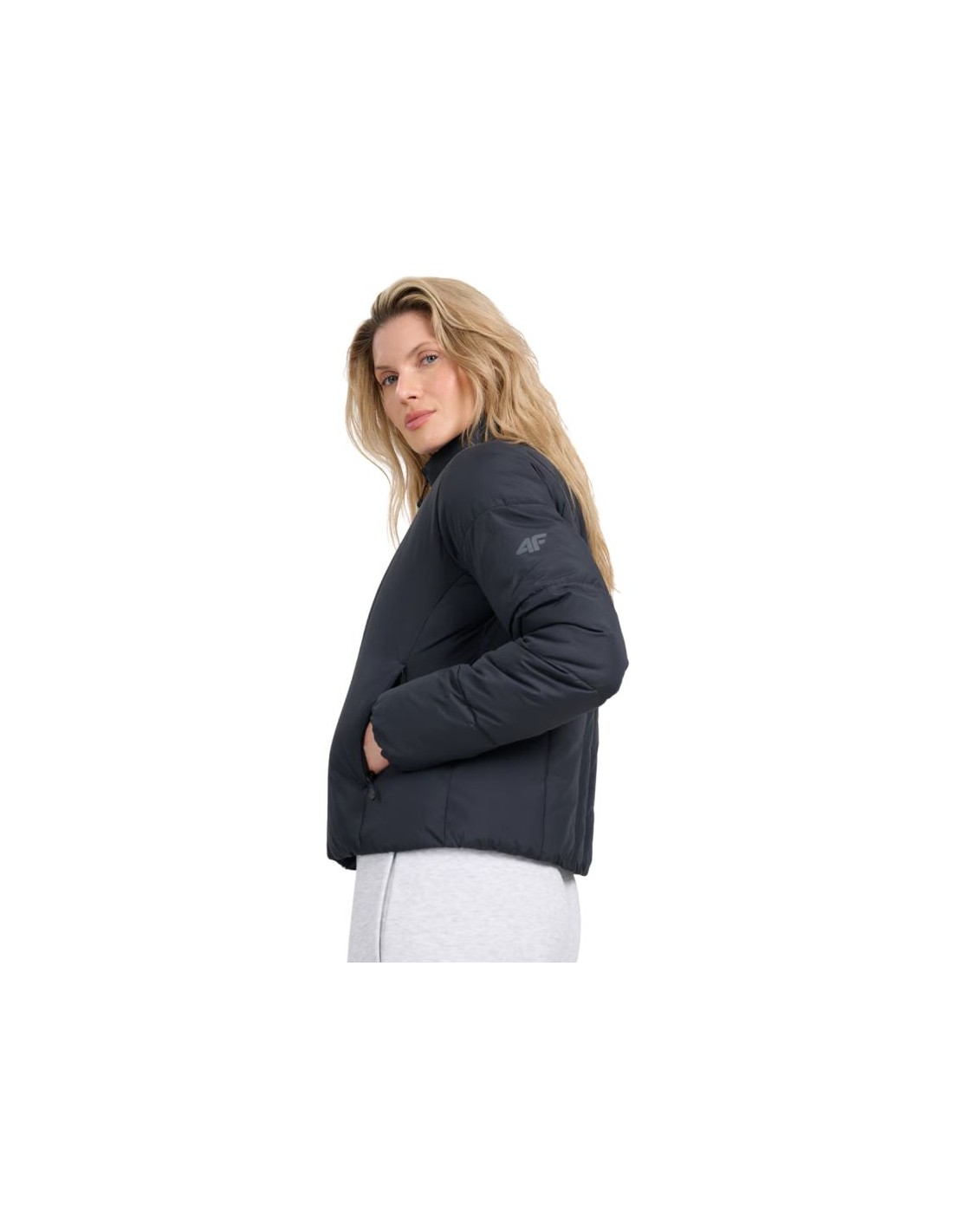 Women\’s down jacket 4F F0705 deep black 4FRAW25TDJAF0705 20S The 4F women\’s jacket is perfect for everyday and sports activities on warmer or cloudy days during the transition period. Additionally, the jacket can act as an insulating layer under a jacket with a waterproof membrane. Technical data: Main material: 100% polyester Lining: 100% polyester Filling: 100% polyester · Slim cut – adapts to the silhouette, emphasizing the sporty character Hip-length – standard cut suitable for everyday wear · Lightweight transitional jacket – perfect for warmer, cloudy days · Hydrophobic coating – limits moisture absorption and protects against light rain · Synthetic filling – provides thermal insulation even in humid conditions · Rip stop material – increased resistance to tearing and mechanical damage · Low stand-up collar – additional neck protection against cold · Rubber-trimmed cuffs – better fit and reduced wind penetration 2 side pockets with zippers – safe storage of small items One-way main zipper with a wind flap – protection against heat loss