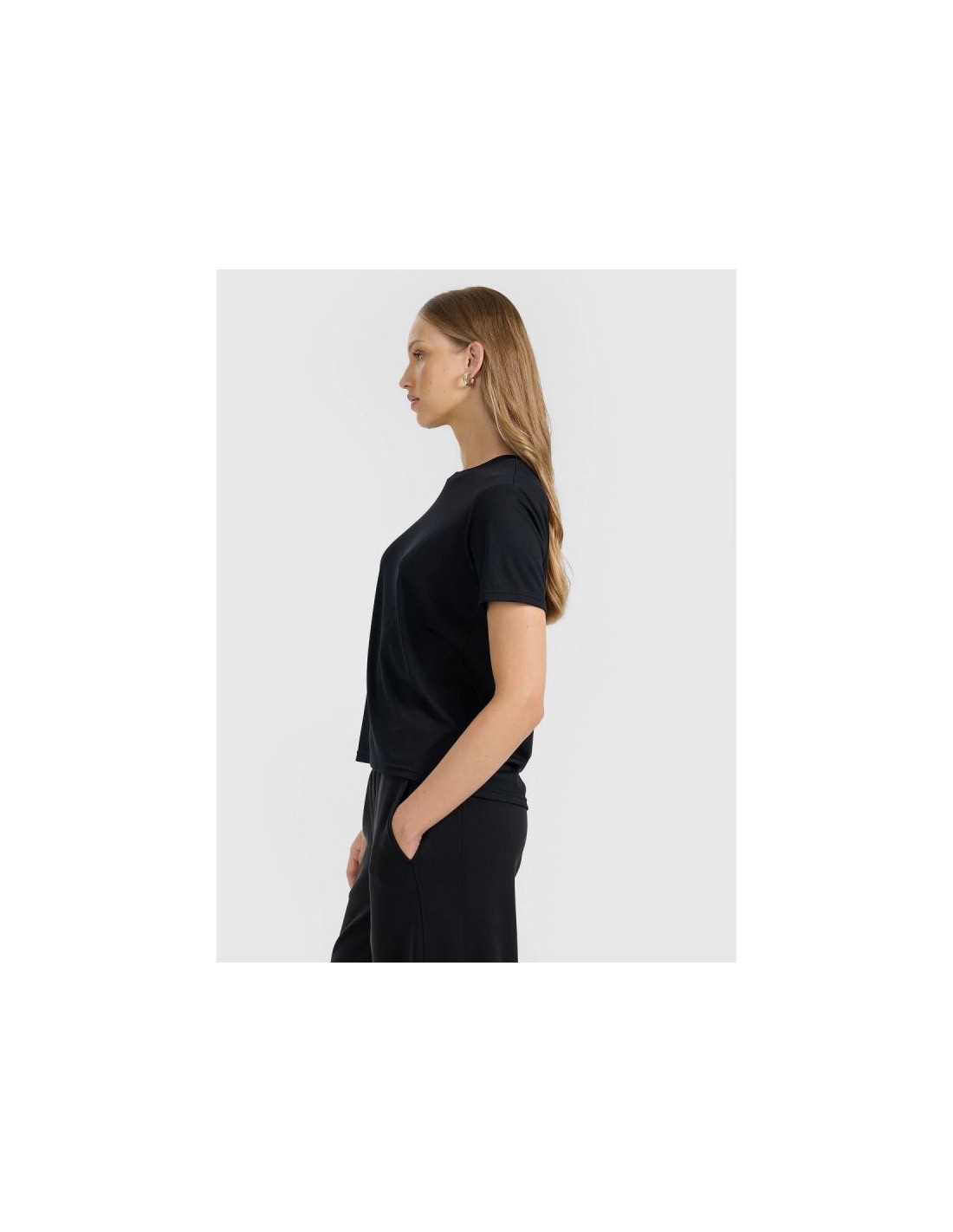 4F women\’s ribbed knit T-shirt – comfort and freedom for every day The 4F women\’s T-shirt, made of stretchy, ribbed fabric, is the perfect choice for women who value comfort and timeless style. The soft, mid-weight material conforms to the body, ensuring comfort and freedom of movement all day long. Key features Ribbed knit fabric – a flexible structure with an interesting texture that fits well to the body. Soft, thicker material – medium thickness fabric ensures comfort and durability. Round neckline – classic and comfortable, suitable for many everyday styles. Regular fit – ensures comfort and a natural fit on the body. Hip-length – a universal cut that goes great with jeans, leggings or a skirt. Stylish minimalism and comfort The stretchy ribbed fabric gives the T-shirt a modern look while also ensuring comfort. The 4F T-shirt is a great base for everyday styling—for work, school, and your free time.