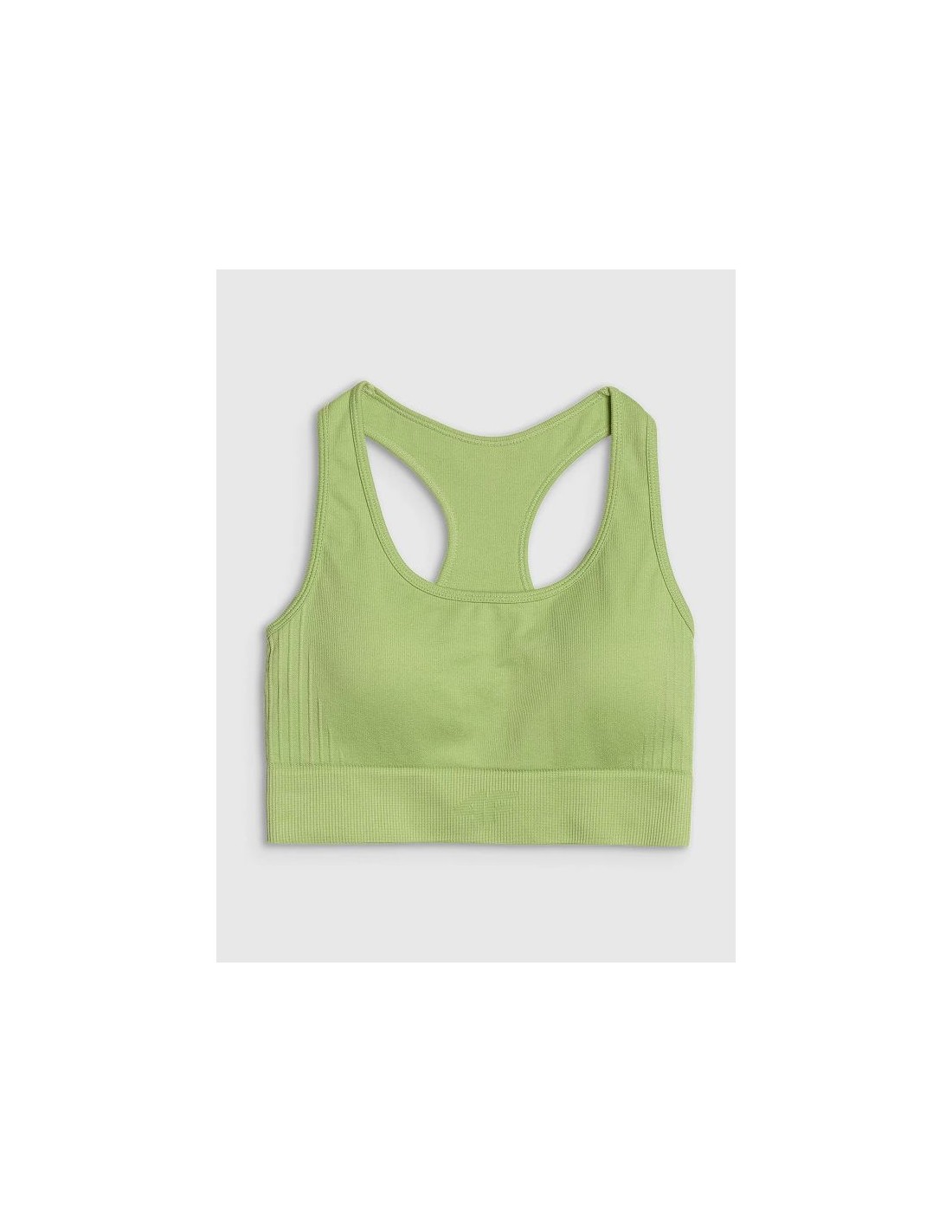 Women\’s Seamless Training Bra – Low Support, Maximum Comfort This seamless sports bra is designed for comfort during low-impact exercises like yoga, stretching, Pilates, and light cardio. Thanks to 4FDry technology and a seamless construction, it provides maximum comfort and freedom of movement, even when worn for extended periods. Key features: Seamless construction – minimizes the risk of abrasions and irritation, ensuring comfort throughout the entire workout Low support – ideal for leisurely activities like yoga or stretching 4FDry technology – quick-drying material effectively wicks away moisture and improves air circulation Light, flexible fabric – adapts to the body, ensuring comfort and a natural fit Wide straps and elastic band under the bust – stability and gentle support without pressure Breathable material – keeps you feeling fresh and dry even on warmer days For active women who value comfort This bra is an essential wardrobe staple for any woman who exercises moderately but doesn\’t compromise on quality or style. Its delicate, seamless construction and quick-drying technology make it perfect for everyday wear. Choose lightness, breathability and a natural fit – choose the seamless 4F bra with low support.