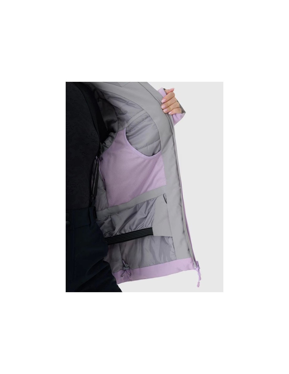This women\’s ski jacket with a membrane features an integrated hood with a contoured visor and adjustable depth. A high collar covers the neck, providing additional protection against cold and wind . The sleeves are finished with Velcro-adjustable cuffs. Underarm ventilation is secured with a one-way zipper concealed by a placket, allowing you to regulate airflow. This women\’s ski jacket fastens with a two-way main zipper with an internal wind flap to prevent cold from entering the jacket. The hem can be adjusted using a tunnel drawcord with toggles. An integrated powder skirt with press-stud adjustments completes the look. cut: regular, which comfortably fits the figure size range: XS-XXL standard cut reaching to the hips polyester, quilted lining the hydrophobic coating of the outer material limits the absorption of moisture fully taped, waterproof seams that, together with the membrane, protect against moisture and precipitation integrated hood with a profiled visor and adjustable volume and depth high collar cuffs with Velcro adjustment ventilation under the arms, adjustable with a one-way zipper hidden under the pleat double, zippered pockets on the sides (2 with zippers + 2 cargo pockets with snaps) chest pocket with zipper closure internal, open mesh goggle pocket internal Velcro pocket ski pass pocket on the left arm two-way main zipper with internal wind flap bottom circumference adjustment using a tunnel drawstring with stoppers integrated snow skirt with snap adjustment polyester insulation ensures optimal thermal comfort NeoDry 8000/5000 membrane protects against moderate rain or snowfall PARAMETERS: Membrane: NeoDry 8000 Water resistance: 8000 mm H2O Breathability: 5000 g/m2/24h Filling: 100% polyester (polyester insulation) The product provides protection against moderate rain or snow. The product ensures optimal moisture management during low-intensity activities. Product intended for cold days. Medium-volume product. Main material: 100% Polyester Lining: 100% Polyester Filling: 100% Polyester
