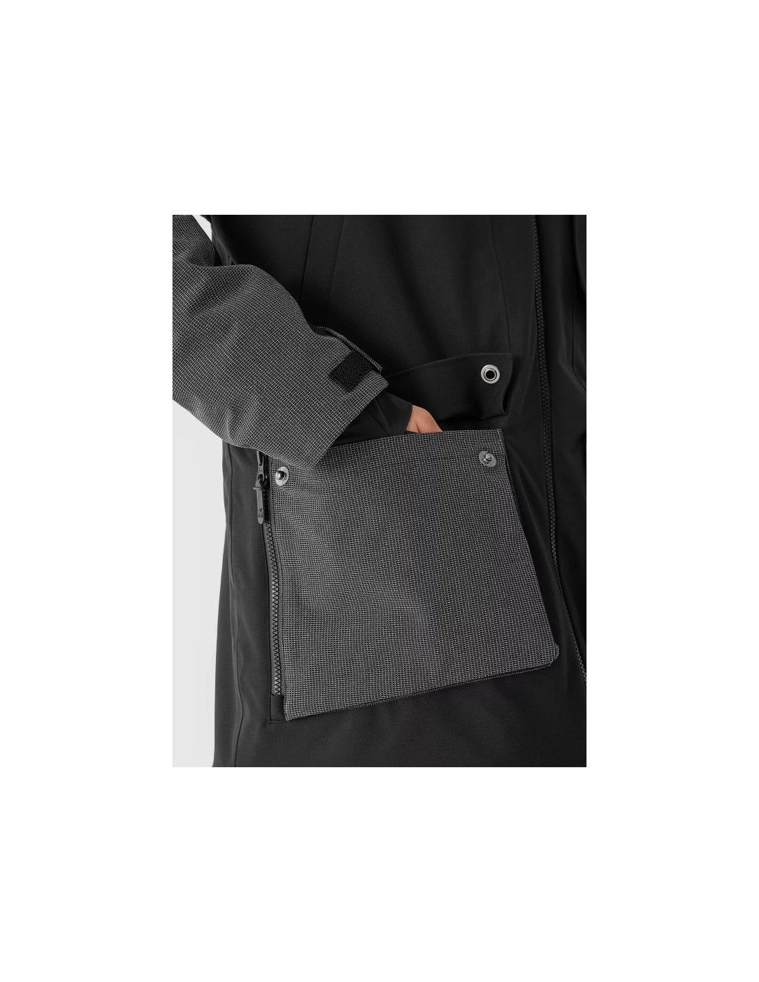 This men\’s snowboard jacket features a two-way, waterproof main zipper with an internal wind flap to prevent cold air from entering the jacket. Reflective elements enhance visibility and an integrated powder skirt with snap adjustments prevents snow from entering. cut: regular, which comfortably fits the figure size range: S-3XL standard cut reaching to the hips jacket designed for colder days polyester, smooth lining the hydrophobic coating of the outer material limits the absorption of moisture fully taped, waterproof seams that, together with the membrane, protect against moisture and precipitation integrated hood with a profiled visor and adjustable volume and depth high collar insulated with soft tricot cuffs with Velcro adjustment inner cuffs made of elastic knit fabric with thumb hole ventilation under the arms, adjustable with a one-way zipper hidden under the pleat 2 side pockets with zipper closure chest pocket with laminated zipper closure internal, open mesh goggle pocket internal zip pocket a small pocket with a Velcro closure, located on the right shoulder ski pass pocket on the left arm two-way, waterproof main zipper with an internal wind flap reflections integrated snow skirt with snap adjustment polyester insulation ensures optimal thermal comfort NeoDry 10000/8000 membrane protects against moderate rain or snowfall PARAMETERS: Membrane: NeoDry 10000 Water resistance: 10000 mm H2O Breathability: 8000 g/m2/24h Filling: 100% polyester (polyester insulation) The product ensures optimal moisture wicking during activities with increased intensity. Product intended for cold days. Medium-volume product. Additional material: Polyamide 80%, Elastane 20% Additional material 2: Polyester 100% Additional material 3: Polyester 94%, Elastane 6% Main material: Polyester 100% Main material 2: Polyester 92%, Elastane 8% Lining: Polyester 100% Filling: Polyester 100%