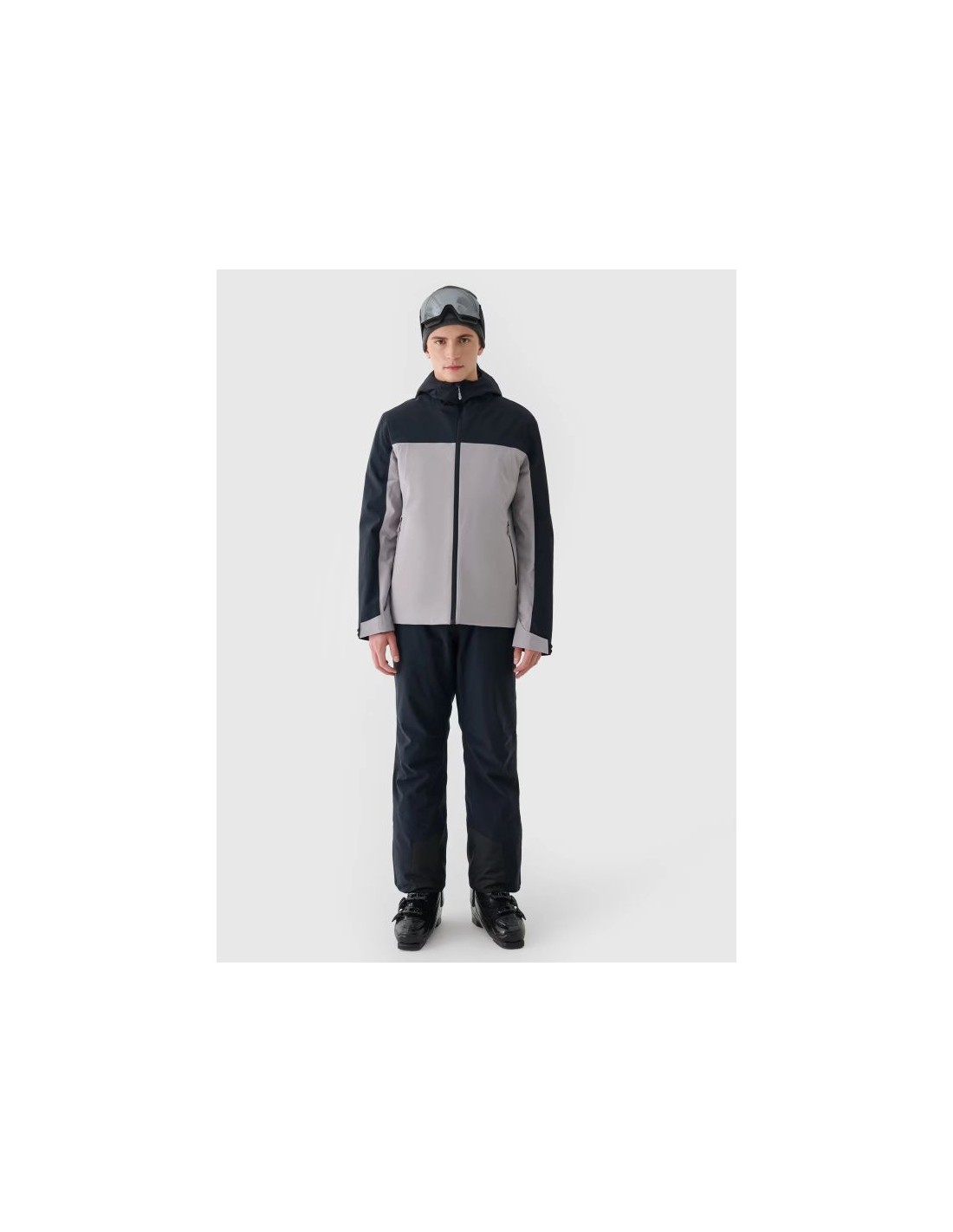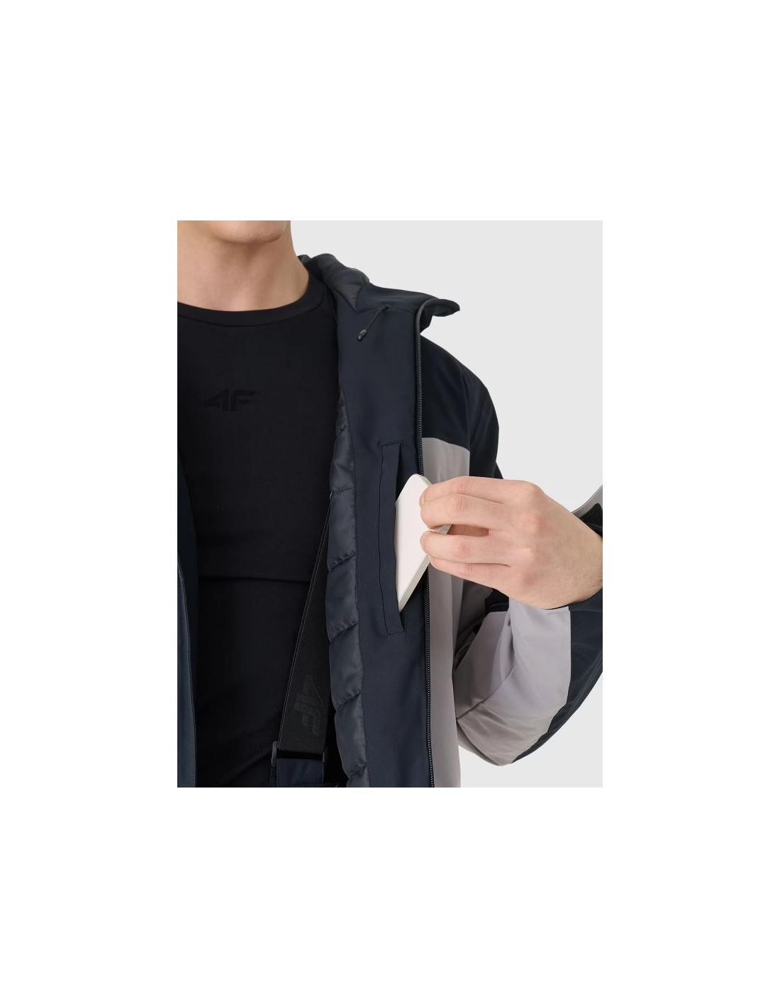 Men\’s hooded ski jacket , suitable for everyday use and low-impact sports. It features a slim fit, regular fit, and standard hip-length measurements. The 4F men\’s ski jacket features a NeoDry 5000/3000 membrane, meaning it\’s suitable for light rain or snow, while providing optimal moisture management during everyday activities. This synthetic down fill is more durable and easier to care for than natural down; it retains its insulating properties even when wet for extended periods, dries significantly faster, and is moisture-resistant. Furthermore, it requires minimal washing and dry cleaning. men\’s ski jacket cut: regular, which comfortably fits the figure standard cut reaching to the hips polyester, quilted lining the hydrophobic coating of the outer material limits the absorption of moisture and taped critical seams in the hood and shoulders integrated hood with a profiled visor and adjustable volume and depth high collar cuffs with Velcro adjustment 2 side pockets with zipper closure internal, open goggle pocket made of breathable mesh internal Velcro pocket ski pass pocket on the left arm one-way main zipper with internal wind flap bottom circumference adjustment using a tunnel drawstring with stoppers synthetic down filling provides adequate insulating properties even in humid conditions NeoDry 5000/3000 membrane protects against light rain or snowfall