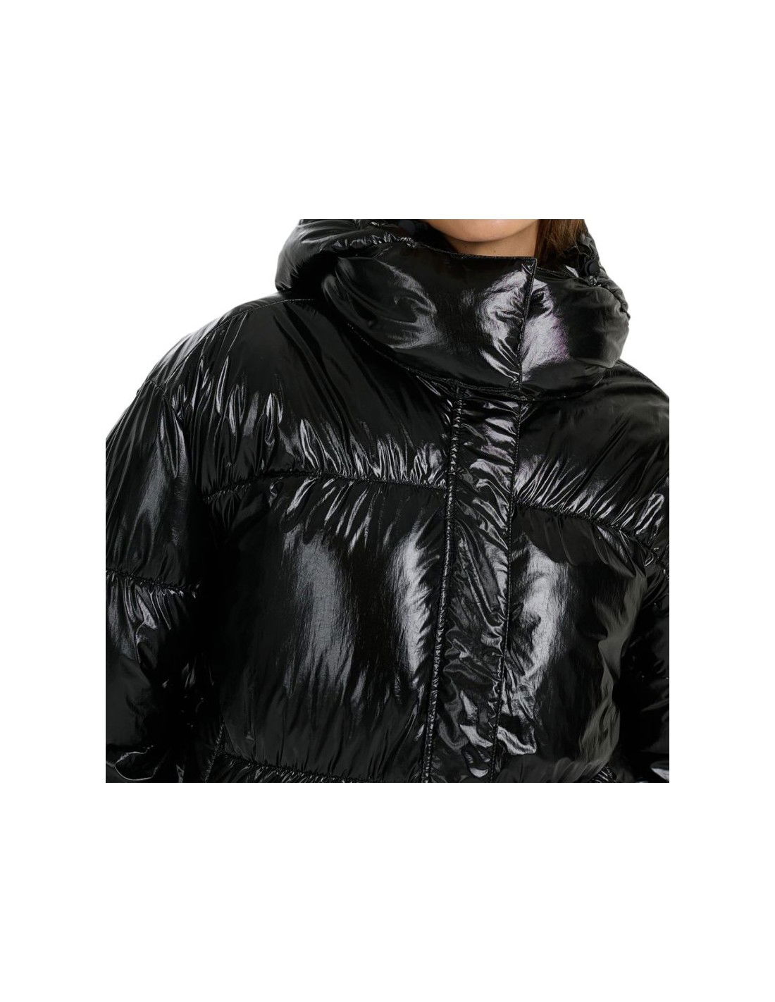 Women\’s down jacket 4F F0716 deep black 4FWAW25TDJAF0716 20S The 4F women\’s jacket will wrap you in warmth and provide comfort in autumn and winter. The outer layer is made of a durable material with a slightly rustling texture, which is characterized by increased abrasion resistance and good resistance to contact with moisture. Technical data: Main material: 100% polyamide Lining: 100% polyester Filling: 100% polyester · Hydrophobic outer coating – limits moisture absorption and protects against light rain · Synthetic down filling – retains warmth even in humid conditions Oversized, loose cut – ensures freedom of movement and a fashionable look Hip-length – comfortable for everyday use and winter walks Smooth polyester lining – makes it easier to put on and improves wearing comfort · Detachable, adjustable hood – you can adjust it to your needs and weather conditions High collar – additional neck protection against wind and cold Elastic cuffs – fit snugly around your wrists and retain warmth 2 side pockets – perfect for hands or essentials · Internal pocket without closure – additional space for a phone or documents · Zipper with wind flap – blocks the access of cold air to the inside of the jacket · Adjustment of the jacket bottom – a tunnel drawstring allows you to adjust the circumference to your figure