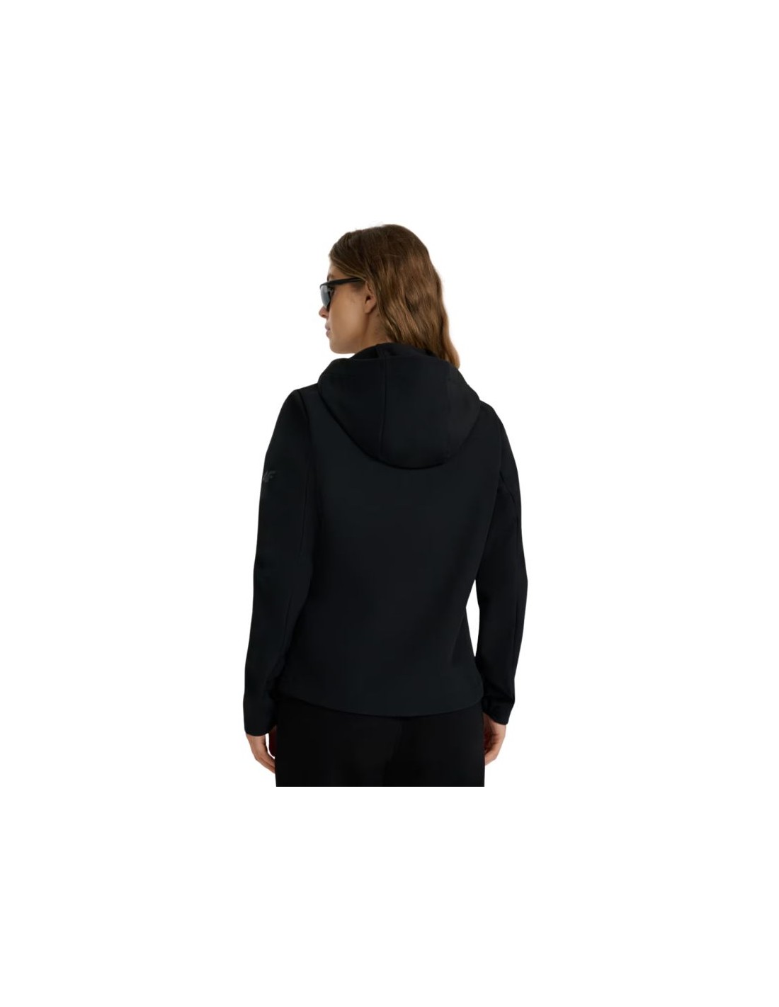 Women\’s jacket 4F F359 deep black 4FWAW25TSOFF359 20S The 4F women\’s softshell jacket will allow you to face changing weather during low-intensity activities. The design will provide protection against the wind and thermal comfort on warmer days. The NeoDry membrane with a parameter of 5000/3000 will provide resistance to light rainfall, while at the same time allowing the free wicking of moisture to the outside. Technical data: Main material: 96% polyester, 4% elastane Lining: 100% polyester · Membrane waterproofness level: 5000 mm H2O · Membrane breathability level: 3000 g/m2/24h NeoDry 5000/3000 membrane – protects against light rain and snow, ensuring breathability · Softshell material – effectively protects against wind thanks to the windstopper function · Hydrophobic outer coating – limits moisture absorption and improves protection · Microfleece lining – provides thermal comfort on warmer days Slim cut – fits comfortably to the body Hip-length cut – classic length for everyday wear and outdoor use Integrated hood – adjustable and with a visor for better wind protection · High collar – protects the neck and prevents cold 2 zippered pockets – a safe place for small items and to warm your hands · Non-adjustable cuffs and hem – simple finish for lightweight, everyday comfort 4FWarm technology – thermal comfort and wearing comfort thanks to the special structure of the material