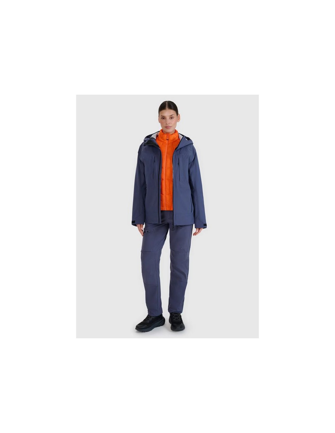 4F Women\’s Trekking Jacket – Advanced Protection and Comfort for Every Trip The 4F women\’s trekking jacket is a lightweight, functional, and durable outer layer designed for variable weather conditions during mountain and outdoor activities. Its regular fit conforms to the body, ensuring comfort and complete freedom of movement. Key features: Sizes: XS–XXL, standard hip length Material: 3-layer lamination with NeoDry 20000/20000 membrane, guaranteeing waterproofness and breathability Hydrophobic coating: prevents moisture absorption, water beading and running down the fabric Taped, waterproof seams: sealed with tape, protecting against water penetration Hood: integrated, adjustable, with a profiled visor for protection against rain and wind Collar: high, protects the neck from the cold Cuffs: adjustable with Velcro, windproof Ventilation: underarm, adjustable with a one-way zipper Zippers: laminated on side and chest pockets, and the main one with a wind flap Pockets: 2 side and 2 chest, all with zippers Bottom adjustment: tunnel drawstring with stoppers for a perfect fit Raglan sleeves: guarantee freedom of movement Reflective elements: improve visibility after dark Technology and application: NeoDry 20000/20000 membrane: highest waterproofness and breathability, effective protection against strong wind and heavy rain 3-layer laminate: durability and lightness in one unlined construction, ideal for demanding terrain Hydrophobic impregnation: protects the material against water penetration Taped seams: guarantee complete waterproofness, even on the stitching Application: Perfect for long treks, hiking, backpacking, and everyday adventures in variable weather conditions. It can be worn as a standalone hardshell jacket or layered with insulating layers.