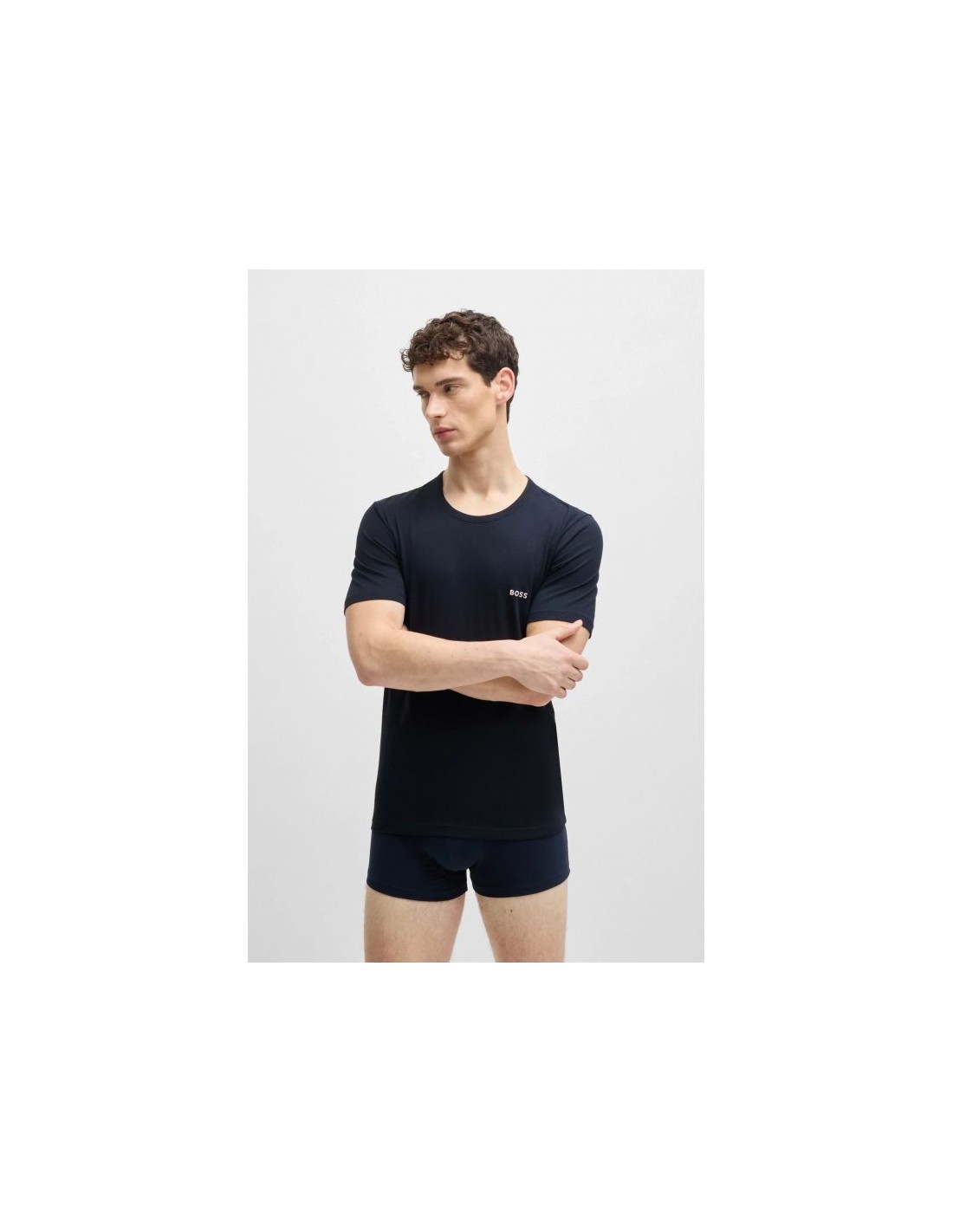 Properties: Color: Multicolor (set of several colors: white, gray, navy blue) Style: Regular fit – classic, universal cut Neckline: Round Material: 100% organic cotton Sleeve type: Short sleeve Technologies: Ecological production, certified organic cotton Set: 3 pieces per package