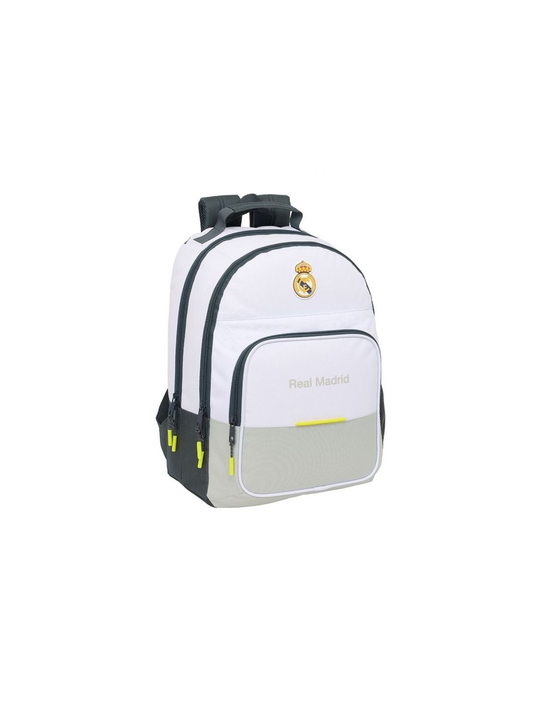Real Madrid double backpack Properties: REAL MADRID BACKPACK Model: DOUBLE BACKPACK Catalog number: 612554560 Official, licensed product of REAL MADRID football club. A backpack for the true fan. Highly functional, perfect for various occasions: school, kindergarten, travel, swimming pool, training, etc. This backpack allows you to express your support for your favorite football team and conveniently carry essential items. Perfectly matched colors emphasize its unique design. This backpack is made with great care and attention to detail. This product includes a full set of manufacturer\’s tags and original packaging. Material: 100% polyester Dimensions: 42 x 32 x 16 cm Capacity: 21 L