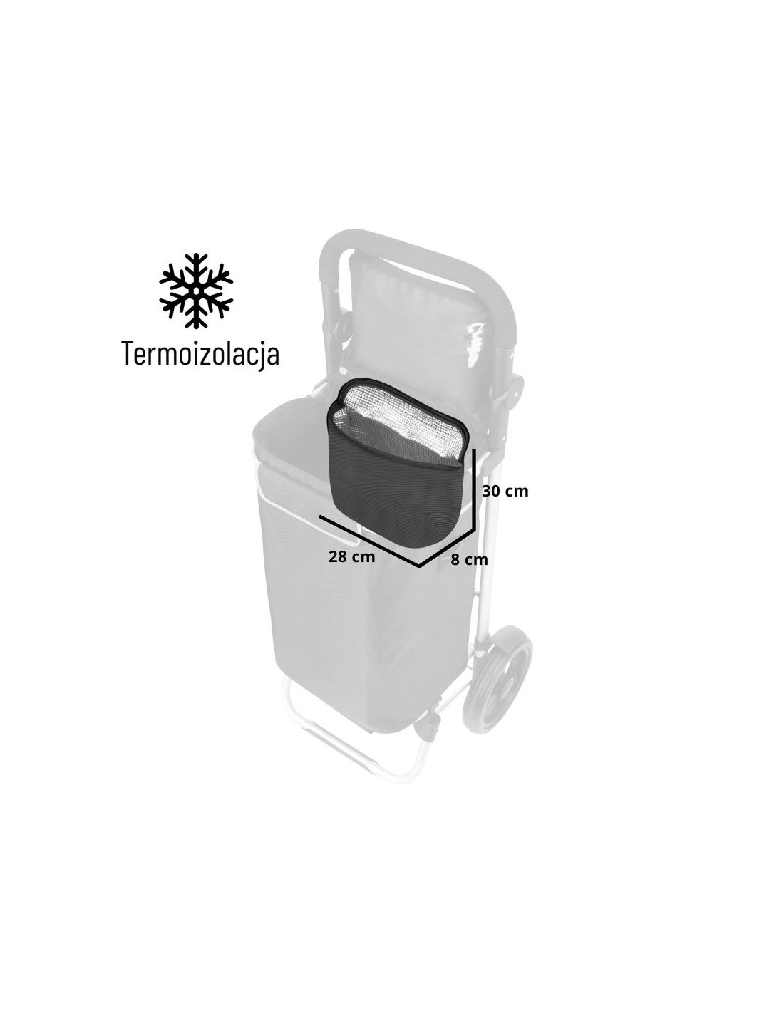 Η χωρητικότητα του Allround από την Cruiser είναι 60 λίτρα. Μπορείτε εύκολα να τοποθετήσετε σε αυτό έως και 25 κιλά αγορών. Στο εσωτερικό του υπάρχει μια επιπλέον θερμική τσάντα 4 λίτρων. Χάρη σε αυτήν, μπορείτε να κάνετε μεγάλες αγορές ακόμη και το καλοκαίρι χωρίς να φοβάστε ότι τα προϊόντα θα χάσουν τις ιδιότητές τους υπό την επίδραση υψηλών θερμοκρασιών. Μπορείτε να αποσυνδέσετε το καροτσάκι από το πλαίσιο αλουμινίου και να το χρησιμοποιήσετε ως κλασική τσάντα ώμου. Το σετ περιλαμβάνει έναν ιμάντα.