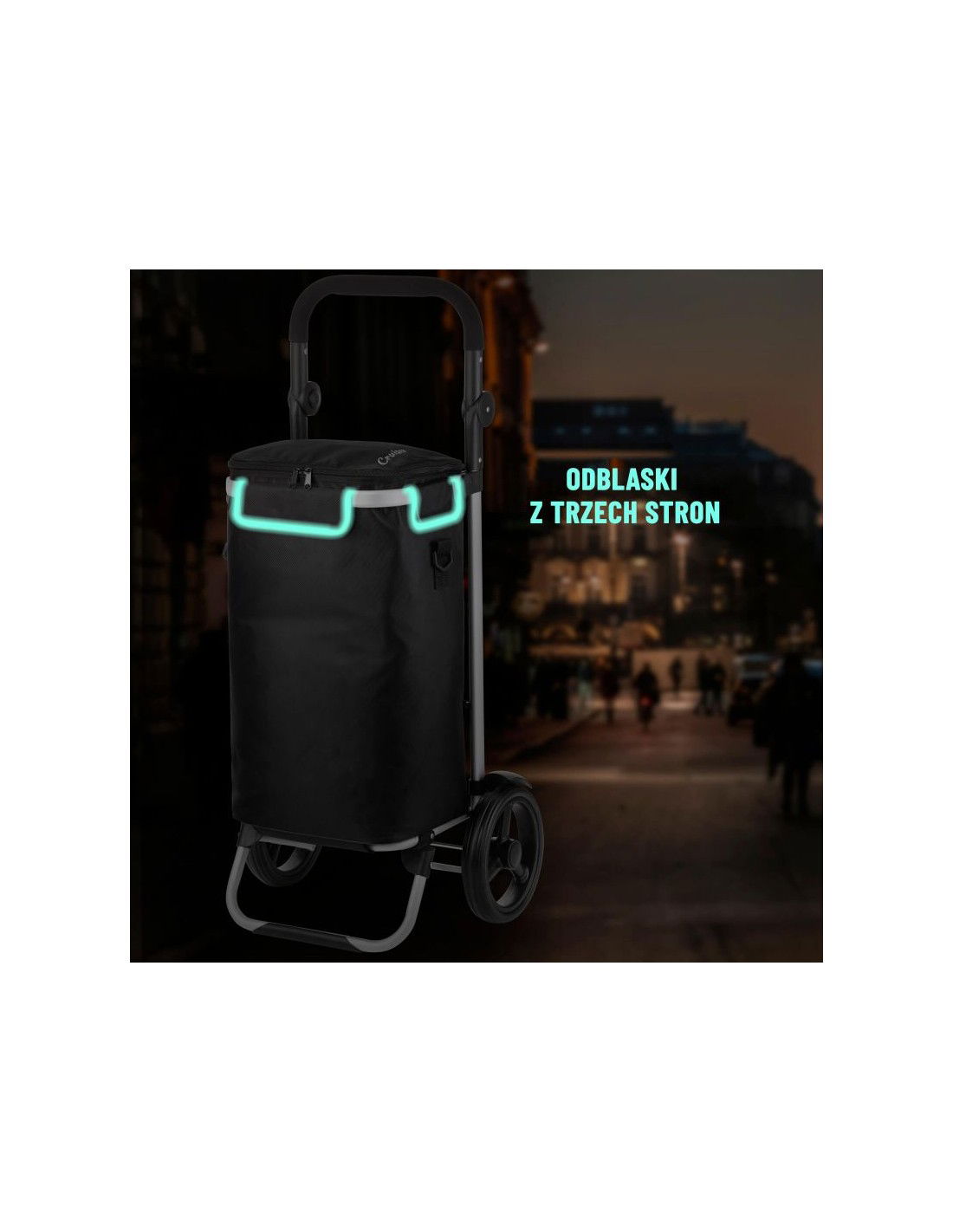 Υπάρχουν ανακλαστικά στοιχεία στο πάνω μέρος του καροτσιού για καλύτερη ορατότητα όταν επιστρέφετε με τα ψώνια σας μετά το σκοτάδι.