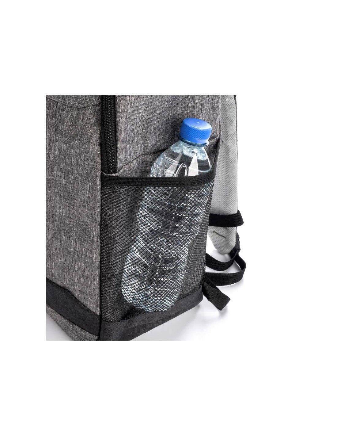 - Στο εσωτερικό, ένας ιμάντας για την κάθετη στερέωση μιας τσάντας νερού ή μπουκαλιών