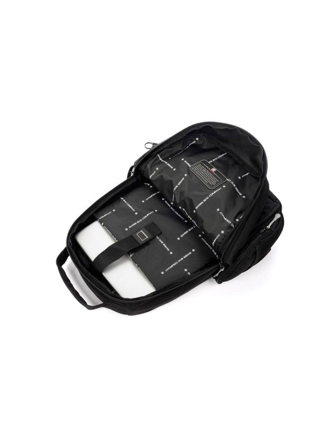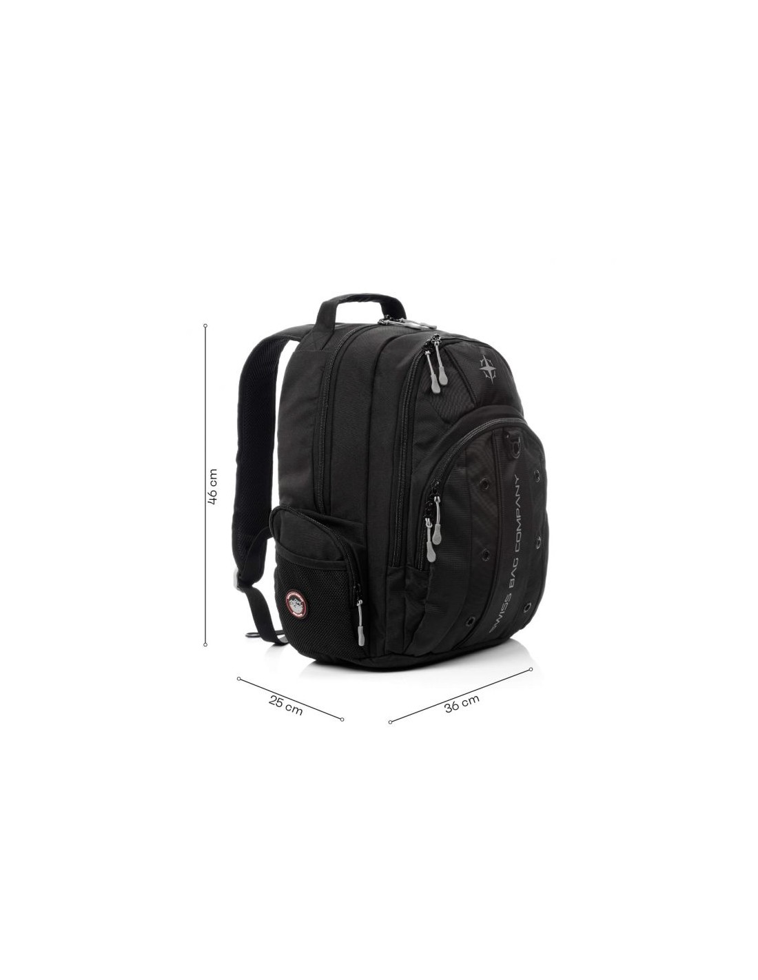 Davos Backpack 76193 Properties: The Davos backpack is a wonderful blend of practicality and professionalism. Its modern and durable construction ensures it will last for years. It\’s equipped with additional pockets and compartments, expanding its range of uses. A major advantage of this backpack is the lockable laptop or notebook compartment equipped with a strap, which increases its security. The soft interior lining provides additional protection against damage and shocks. Made of high-quality polyester, it\’s resistant to various types of dirt. The backpack features adjustable back straps with a flexible, soft pad for comfortable carrying and rapid ventilation. Finished with Swiss clasps and a logo, it highlights the high quality of the product. Properties: 1 compartment for a 15.6\” laptop 2nd compartment for other things, such as a charger or documents 1 side pocket with additional mesh for smaller items compartment for pens and phone adjustable length of back straps reinforced shoulder strap strap holder for glasses. Specification: Dimensions: 46 x 36 x 20 cm Capacity: 30 liters Weight: 800 g Color: black Material: Ripstop polyester Application: city, travel.