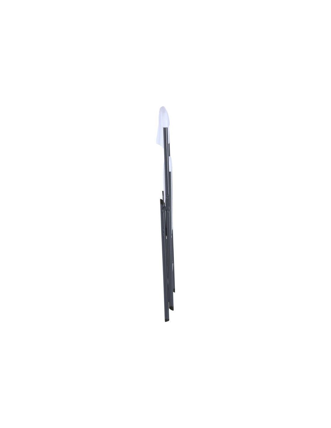 TECHNICAL DATA Dimensions (when unfolded): 50.7 cm x 47.9 cm x 83 cm (L x W x H) Dimensions (folded): 6.8 cm x 47.9 cm x 103.1 cm (L x W x H) Seat width: 40.7 cm Seat and backrest material: high-density polyethylene (HDPE) Frame material: Powder-coated steel Leg diameter: 22 mm Weight: 4.15 kg Maximum load: 350 kg Seat and backrest color: white granite Frame color: gray Warranty: 2 years