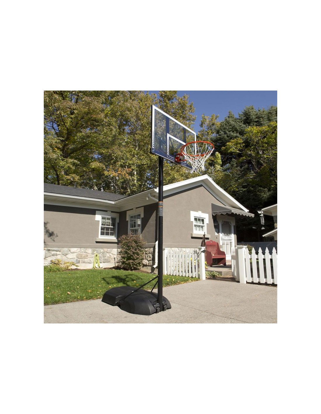 Η φορητή βάση μπάσκετ διαθέτει ταμπλό 44\” κατασκευασμένο με τεχνολογία Steel-Framed Shatter-Proof. Η τεχνολογία Shatter-Proof εγγυάται μακροχρόνια ανθεκτικότητα και αντοχή στα χτυπήματα χάρη στην επίστρωση από πολυκαρβονικό Makrolon® υψηλής ποιότητας. Η τεχνολογία Steel-Framed είναι ένα ανθεκτικό χαλύβδινο πλαίσιο για την πλάτη του ταμπλό. Η πρόσθετη προστασία της κάτω άκρης του ταμπλό και η τεχνολογία ρύθμισης του ύψους του ταμπλό Quick Adjust® II εξασφαλίζουν άνετο και ασφαλές παιχνίδι σε κάθε επίπεδο παιχνιδιού, χάρη στη ρύθμιση στο εύρος από 244 έως 305 cm. Το αδιάβροχο νάιλον πλέγμα και ο στρογγυλός στύλος με διάμετρο 7,6 cm Τα ρολά μεταφοράς που είναι τοποθετημένα σε μια σταθερή βάση γεμάτη νερό χωρητικότητας 128 λίτρων εξασφαλίζουν την πλήρη κινητικότητα και σταθερότητα της βάσης.