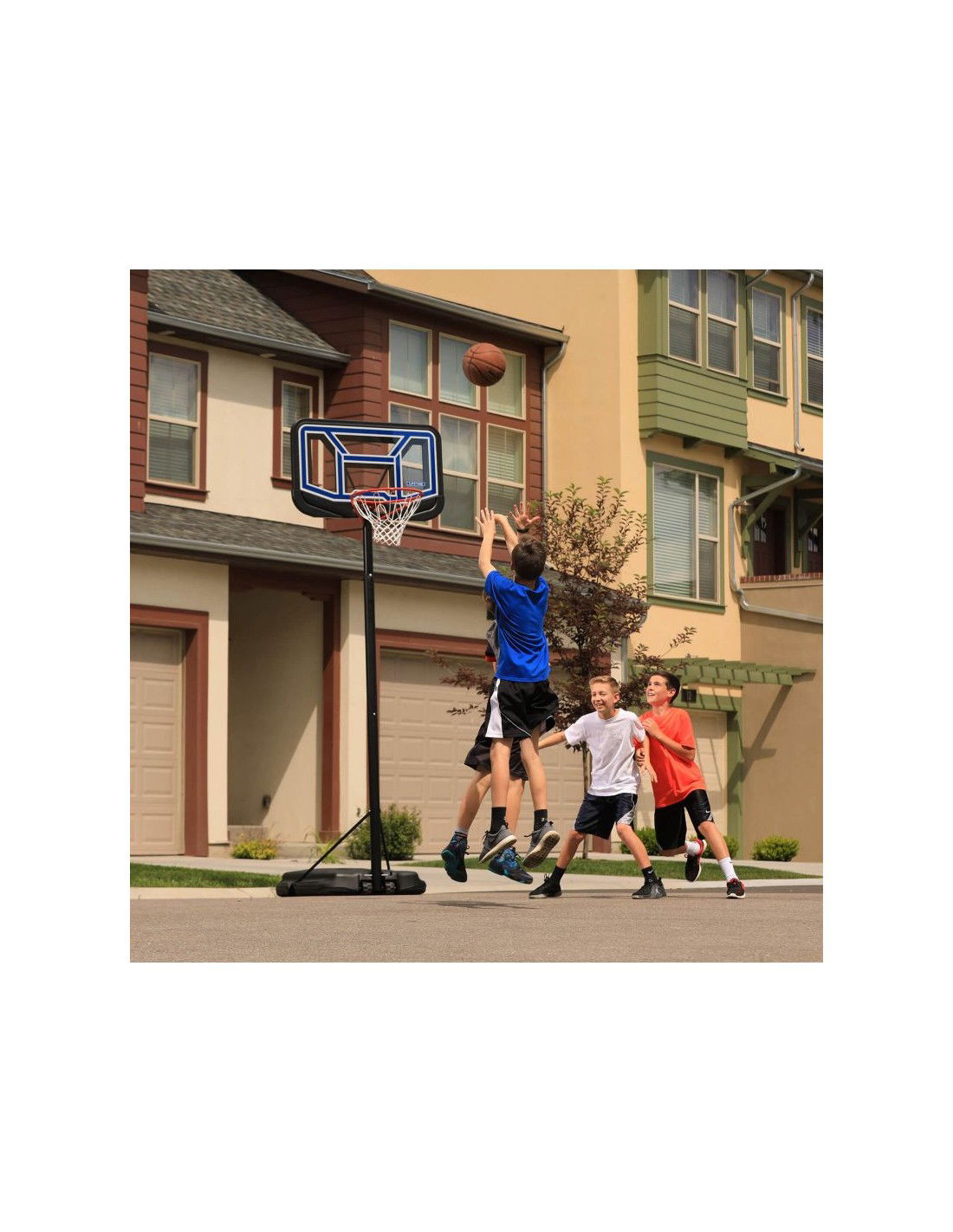 Η φορητή βάση μπάσκετ διαθέτει ταμπλό 44\” κατασκευασμένο με τεχνολογία Steel-Framed Shatter-Proof. Η τεχνολογία Shatter-Proof εγγυάται πολλά χρόνια αντοχής και ανθεκτικότητας στις κρούσεις χάρη στην επίστρωση από πολυκαρβονικό Makrolon® υψηλής ποιότητας. Η τεχνολογία Steel-Framed είναι ένα ανθεκτικό χαλύβδινο πλαίσιο του ταμπλό. Τηλεσκοπική ρύθμιση ύψους. Ο πίνακας επιτρέπει τη γρήγορη και εύκολη ρύθμιση σε διάφορα ύψη, που κυμαίνονται από 228 έως 304 cm, εξασφαλίζοντας άνετο και ασφαλές παιχνίδι σε κάθε επίπεδο προόδου. Το σύνολο συμπληρώνεται από ένα ανθεκτικό στεφάνι με νάιλον πλέγμα ανθεκτικό στις καιρικές συνθήκες και ένα στρογγυλό κοντάρι με διάμετρο 6,9 cm. Το HDPE με χωρητικότητα 45 λίτρων, γεμάτο με νερό ή άμμο, εξασφαλίζει την πλήρη σταθερότητα της βάσης. Ένα ιδανικό σετ για αρχάριους και μέσους παίκτες μπάσκετ.