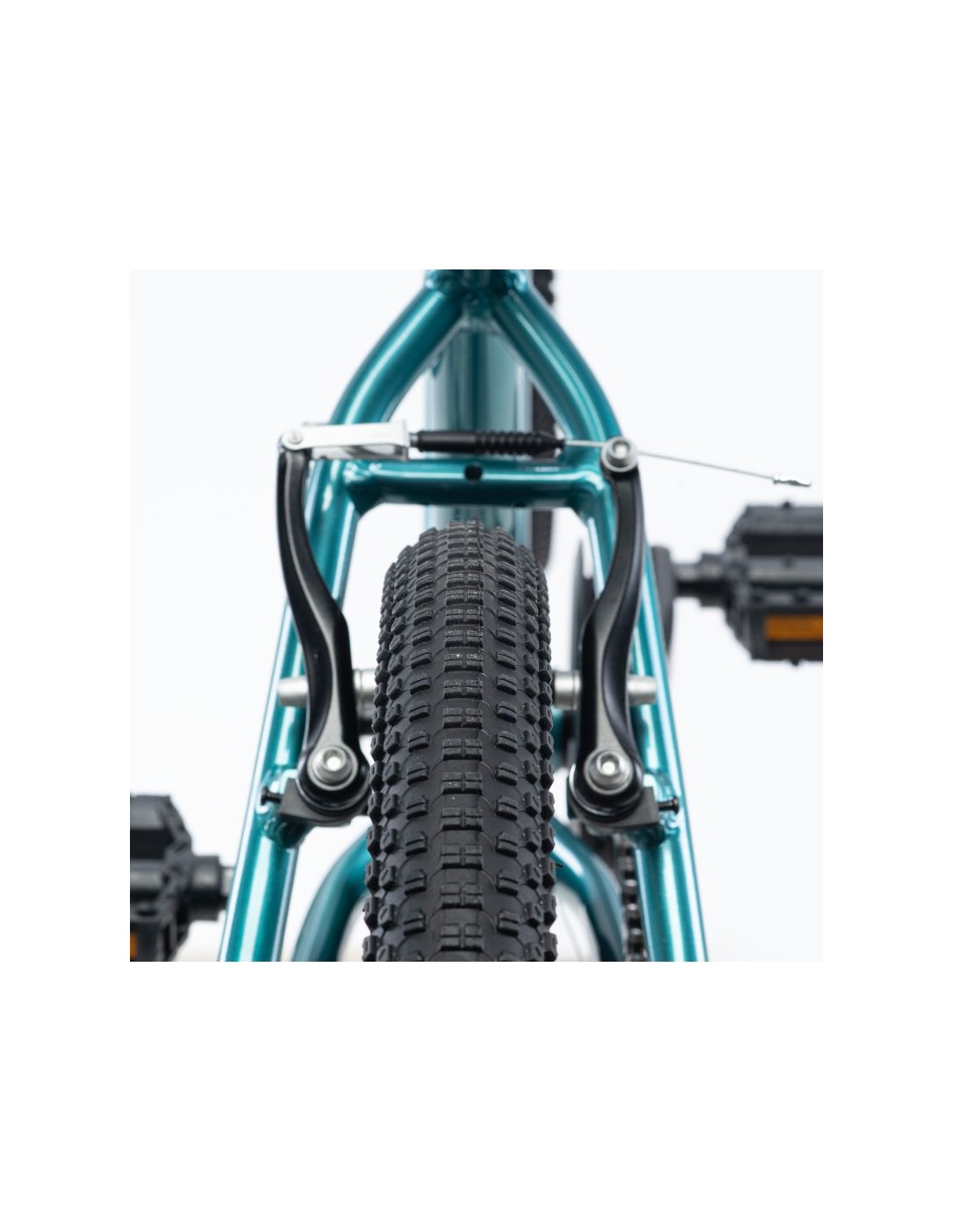 Properties: Lightweight aluminum frame – weighs only 10.6 kg, making it easy to drive and maneuver Shimano Tourney 7-speed rear derailleur – ensures smooth and precise gear changes Shimano Twist Shifter levers – intuitive operation and comfortable gear shifting V-Brake rim brakes (front and rear) – guarantee effective braking and full control of the bike Single-speed crankset – easier operation and lower maintenance requirements 20\” x 1.95 wheels – provide good traction and a comfortable ride Technical specifications: Frame: aluminum Fork: aluminum Front derailleur: none Rear derailleur: Shimano Tourney 7-speed Controls: Shimano Twist Shifter Front brake: V-Brake Rear brake: V-Brake Crankset: 1-speed Wheels: 20\” x 1.95