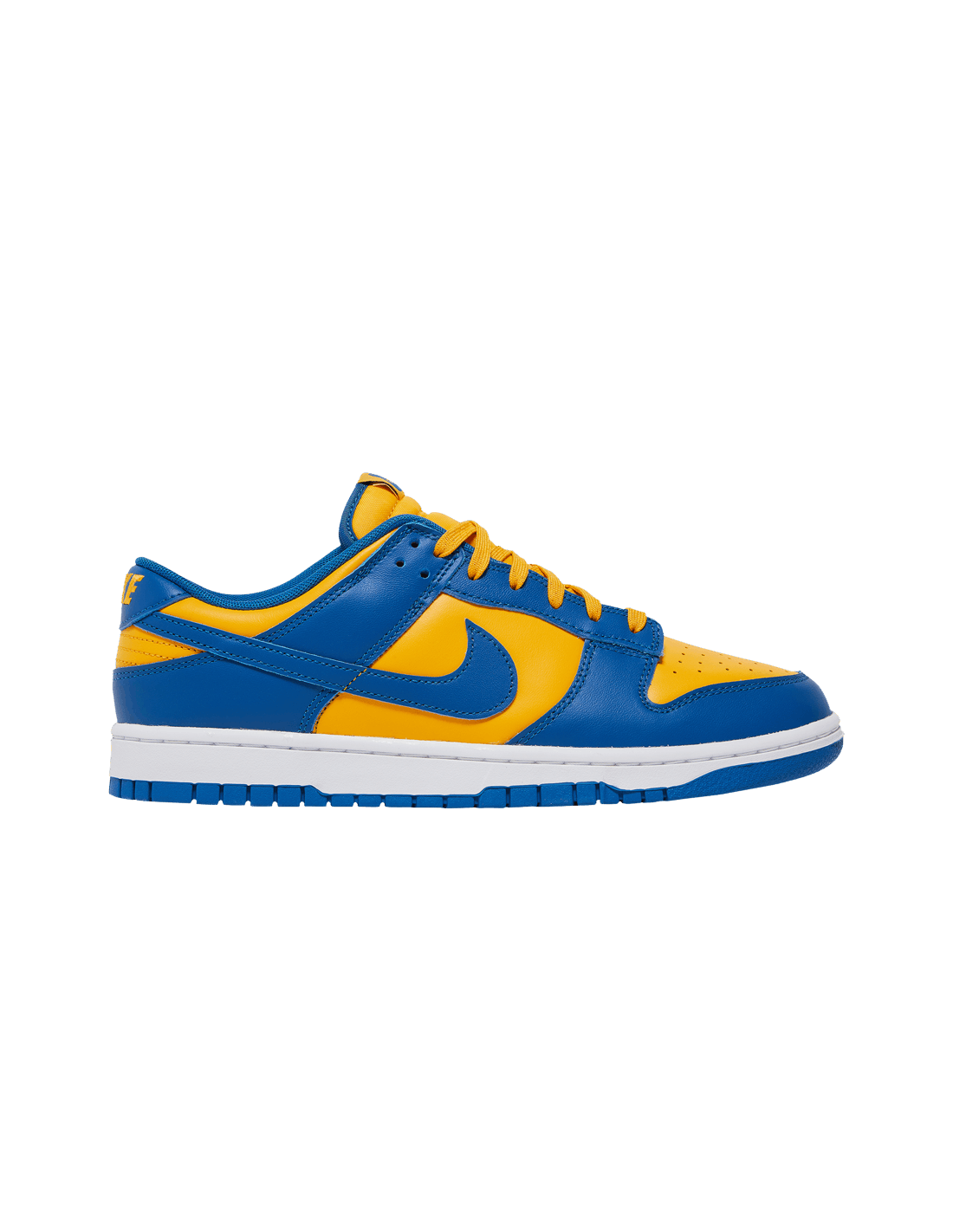 Το Nike Dunk Low UCLA DD1391402 MBS είναι μια μοναδική εκδοχή του κλασικού μοντέλου Dunk Low, εμπνευσμένη από το πνεύμα και τα χρώματα του πανεπιστημίου UCLA. Το παπούτσι διαθέτει το γνωστό σχέδιο color blocking με μπλε, κίτρινο και λευκό χρώμα, ενώ οι λεπτομέρειες σε suede και leather προσθέτουν ποιότητα και στυλ. Η ενδιάμεση σόλα Nike Air προσφέρει άνεση και αντικραδασμική προστασία κάθε φορά που τα φοράτε.