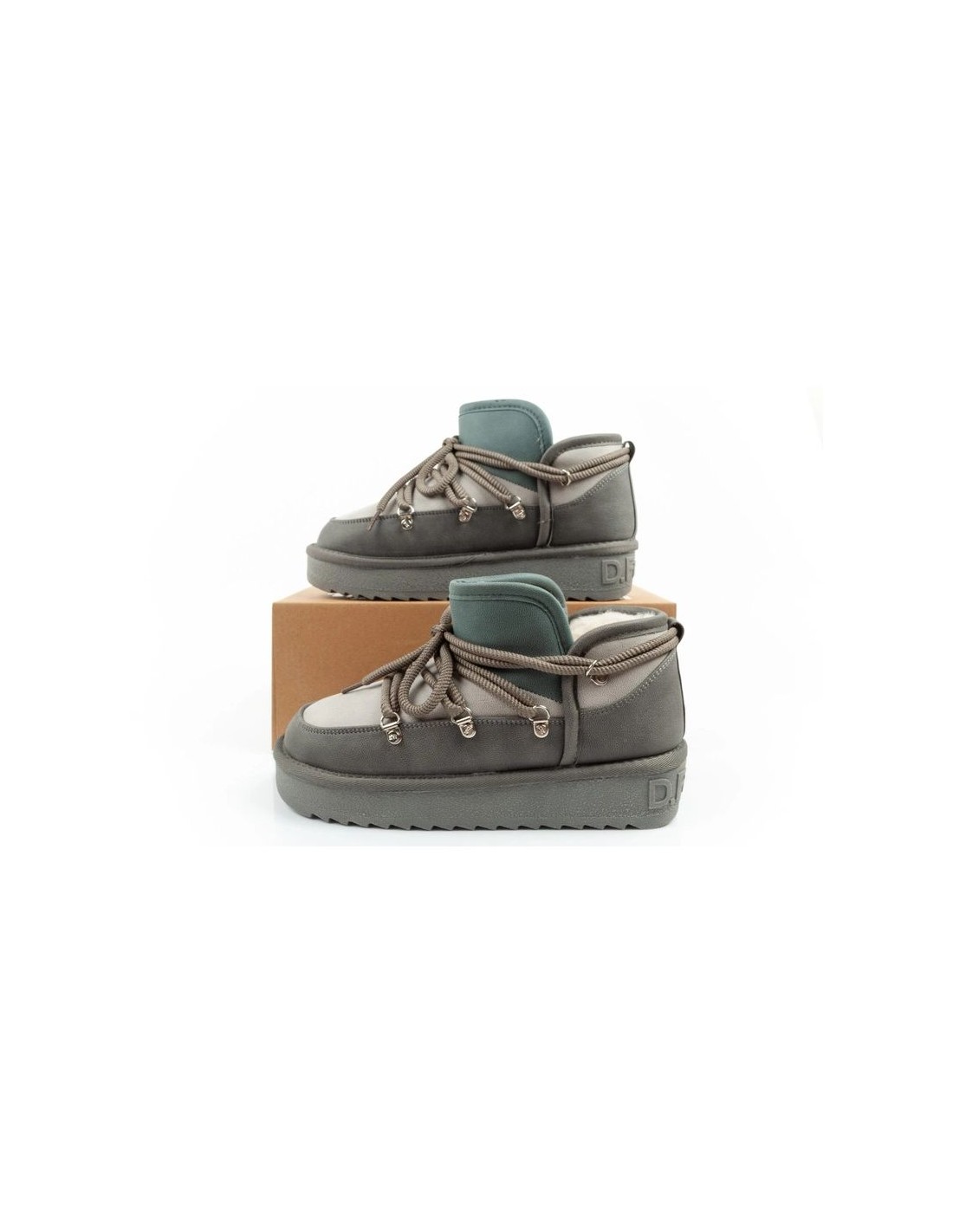 D.Franklin women\’s winter snow boots, fashionable insulated ankle boots, gray Stylish women\’s shoes by D. Franklin. The raised upper is made of the highest quality eco-leather, which should be impregnated before use to provide the shoes with additional protection against moisture. Shoes lined with fur guarantee warmth even in very low temperatures. Classic lacing ensures a perfect fit to the foot. A thick, fully cushioned outsole protects against frost. The perfect footwear for any fashionable outfit. Winter snow boots by D. Franklin. D. Franklin Nordic shoes are the perfect combination of fashionable design and functionality. Inspired by outdoor style, they provide comfort for everyday use and are perfect for autumn and winter conditions.