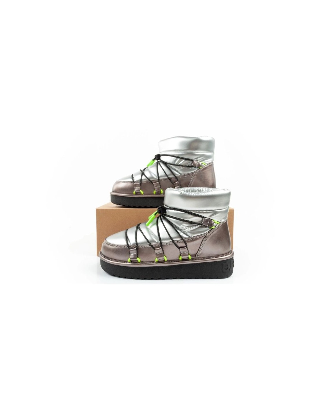 D.Franklin women\’s snow boots winter fashionable insulated ankle boots silver Stylish women\’s shoes by D. Franklin. The raised upper is made of the highest quality coated textile materials and eco-leather, which should be impregnated before use to provide the shoes with additional protection against moisture. Shoes lined with fur guarantee warmth even in very low temperatures. The quick lacing system used in the shoes ensures a perfect fit to the foot. A thick, fully cushioned outsole protects against frost. The perfect footwear for any fashionable outfit. Winter snow boots by D. Franklin. D. Franklin Nordic shoes are the perfect combination of fashionable design and functionality. Inspired by outdoor style, they provide comfort for everyday use and are perfect for autumn and winter conditions.