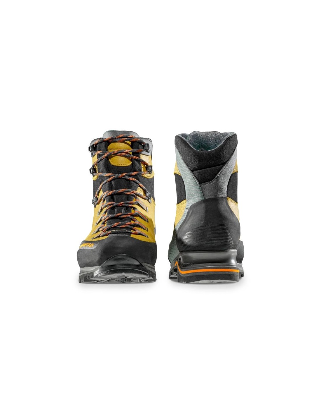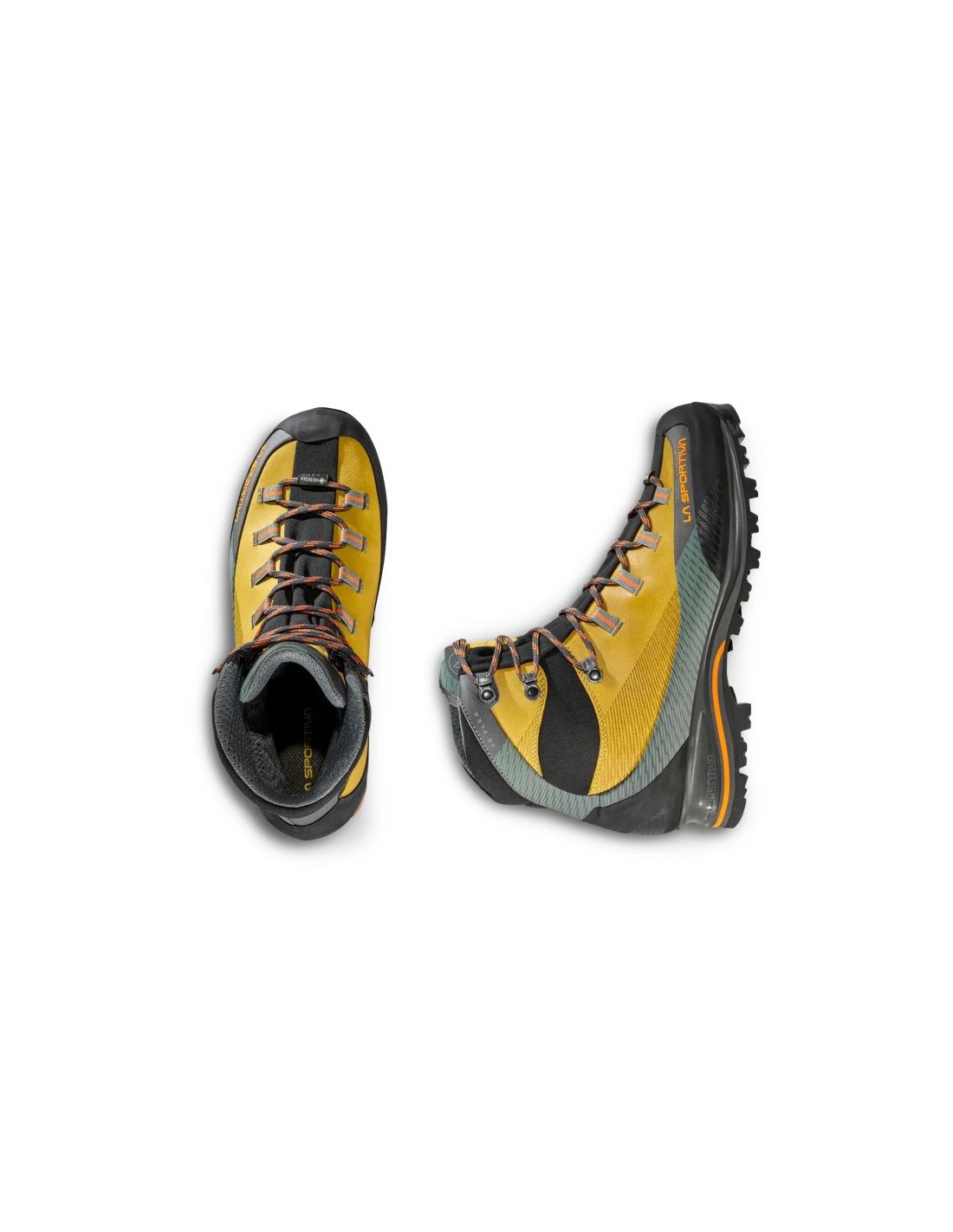 La Sportiva TRANGO TRK Leather GTX ZFMS110E32006 Savana/Tiger The Trango TRK Leather GTX Savana/Tiger is a men\’s model designed for challenging terrain—trekking, backpacking, mixed routes, and via ferratas. The approximately 1.8 mm thick leather upper with a hydrophobic Idro-Perwanger finish, along with microfiber inserts, provides water and abrasion resistance. A Gore-Tex Performance Comfort membrane ensures the shoes remain waterproof yet breathable. A polyurethane midsole with EVA in the rear absorbs shock, especially when hiking with a loaded backpack. A 5mm thick PPE insole with a reinforced anti-torsion section enhances stability and comfort. The Vibram outsole with Impact Brake System provides strong traction, while a Climbing Zone on the toe helps with technical sections. The 3D Flex system supports ankle stability, and the differentiated lacing allows for a better fit. Weighing approximately 1380g per pair, these shoes are designed for more demanding tasks, yet with the robust construction and functionality you expect from outdoor gear.