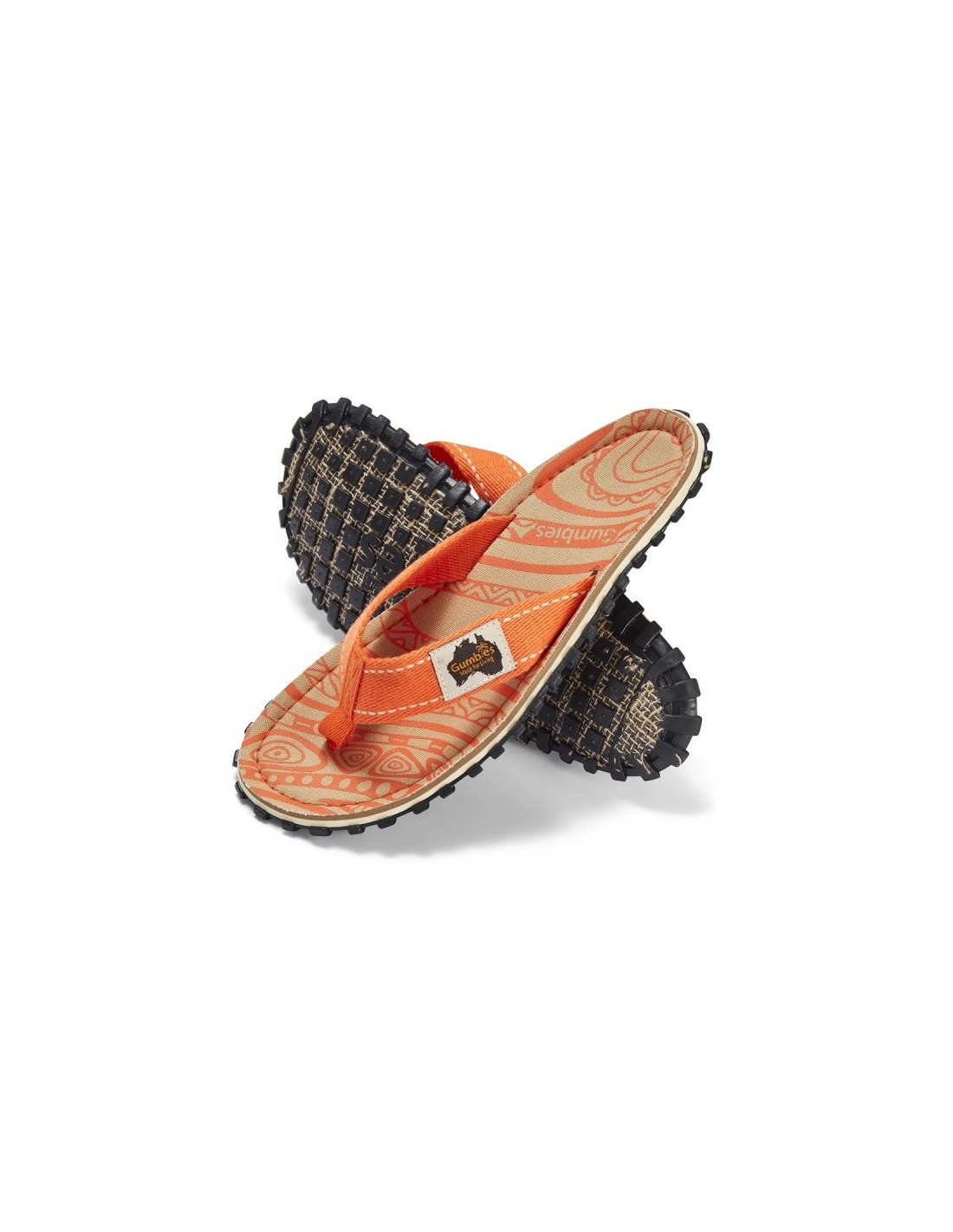 Το ανάγλυφο λογότυπο της Gumbies επιτρέπει στον αέρα να ρέει κάτω από το πόδι, αλλά εξασφαλίζει επίσης καλή στήριξη.