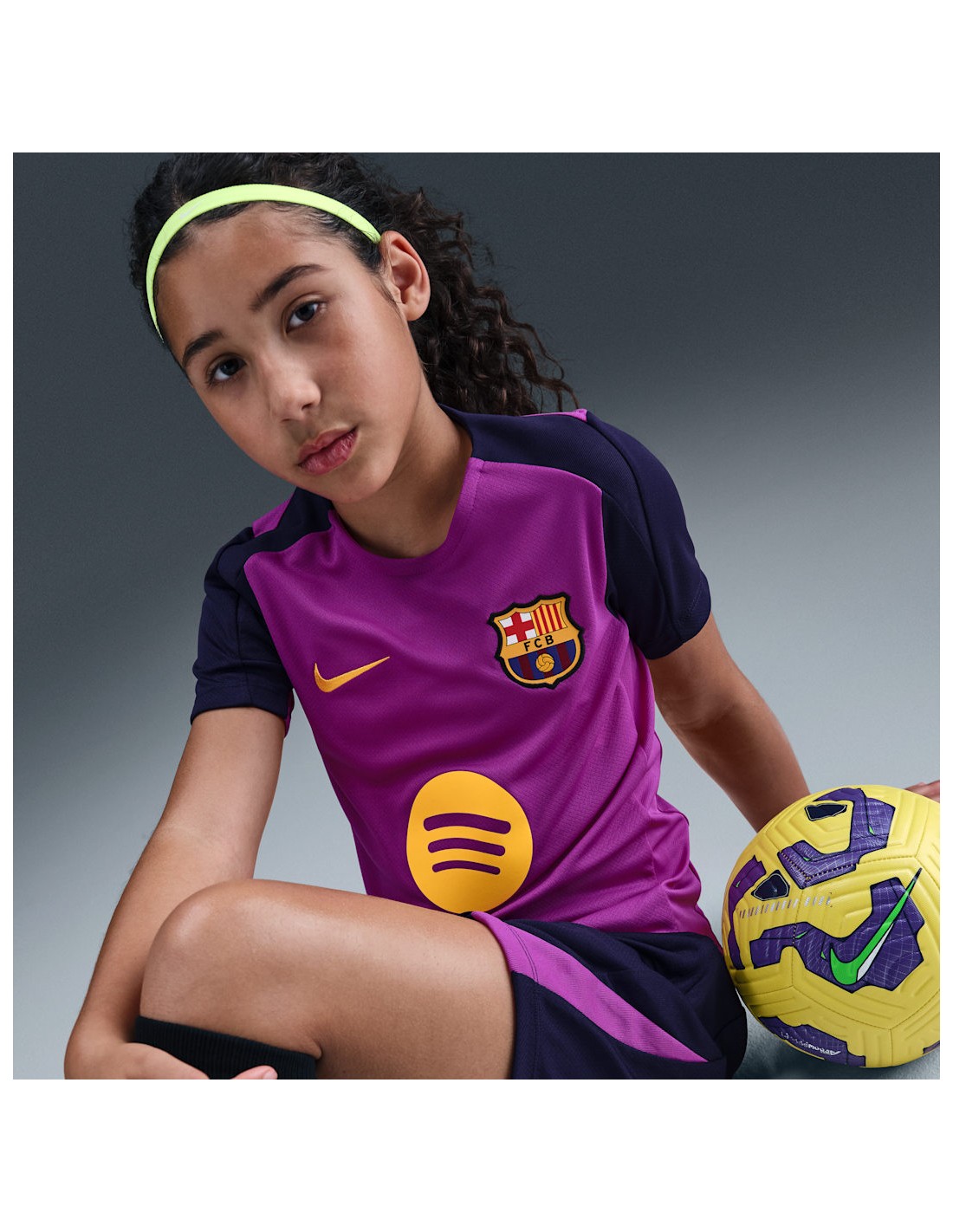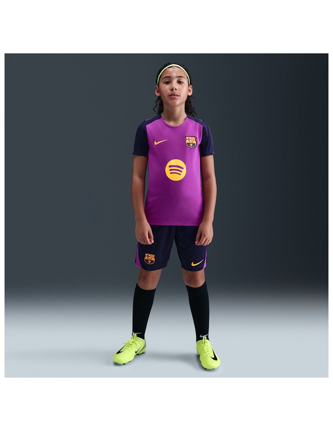 T-shirt from the latest Nike Barcelona collection With details designed specifically for rising football stars, the slim fit and sweat-wicking technology work together to help you stay cool and composed while honing your skills. Color shown: Vivid Purple / Vivid Purple / Imperial Purple / Midwest Gold Style: HJ7831-552