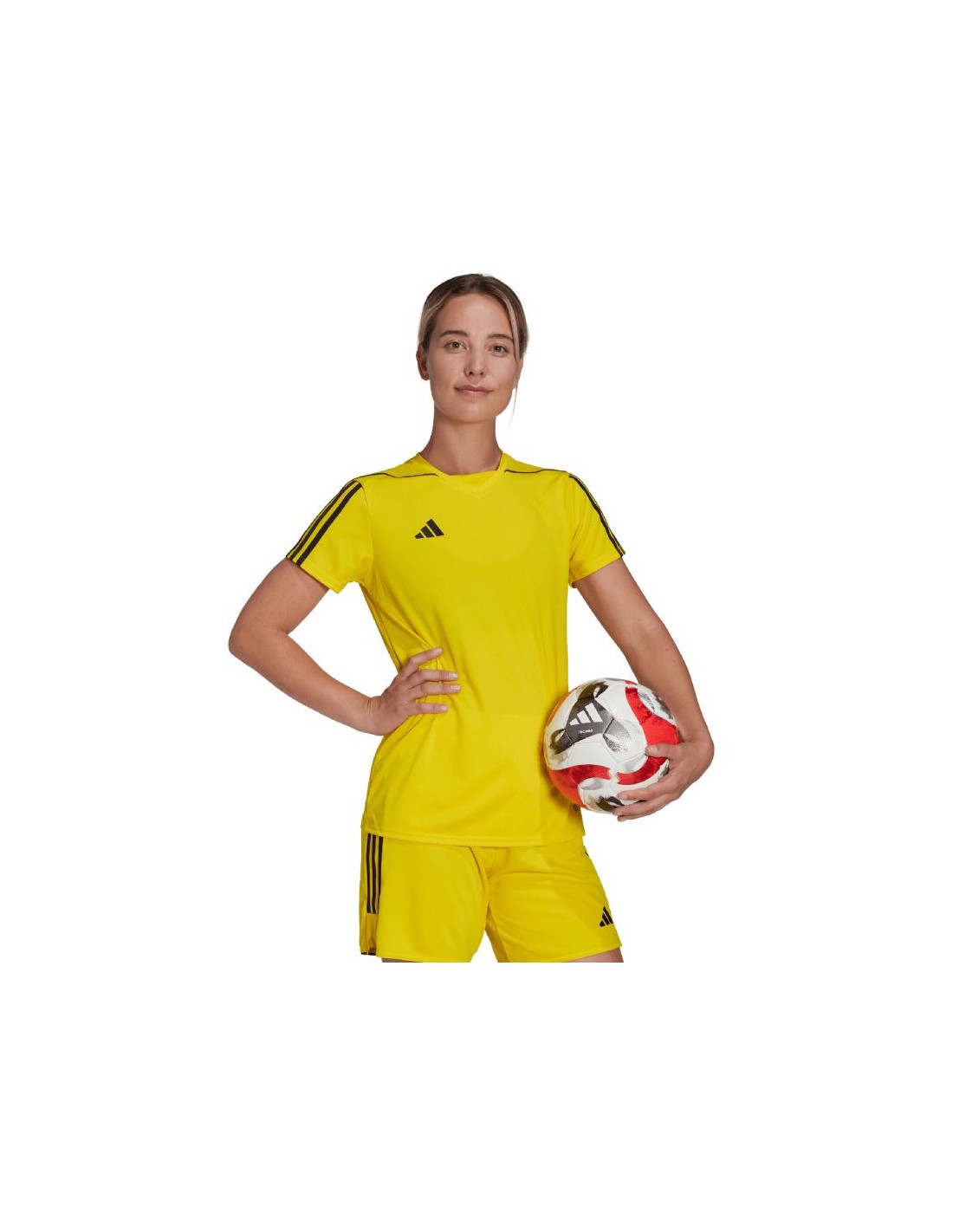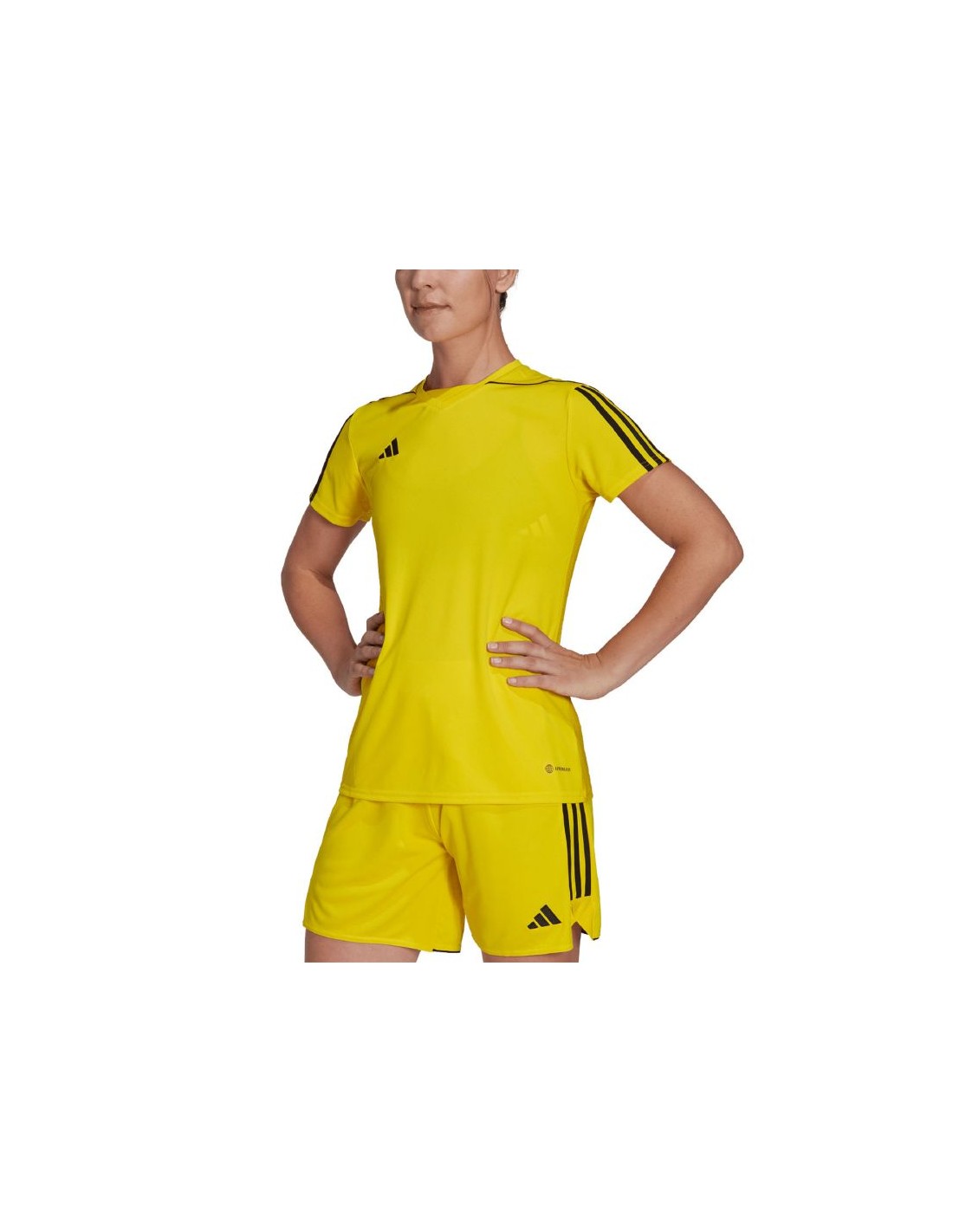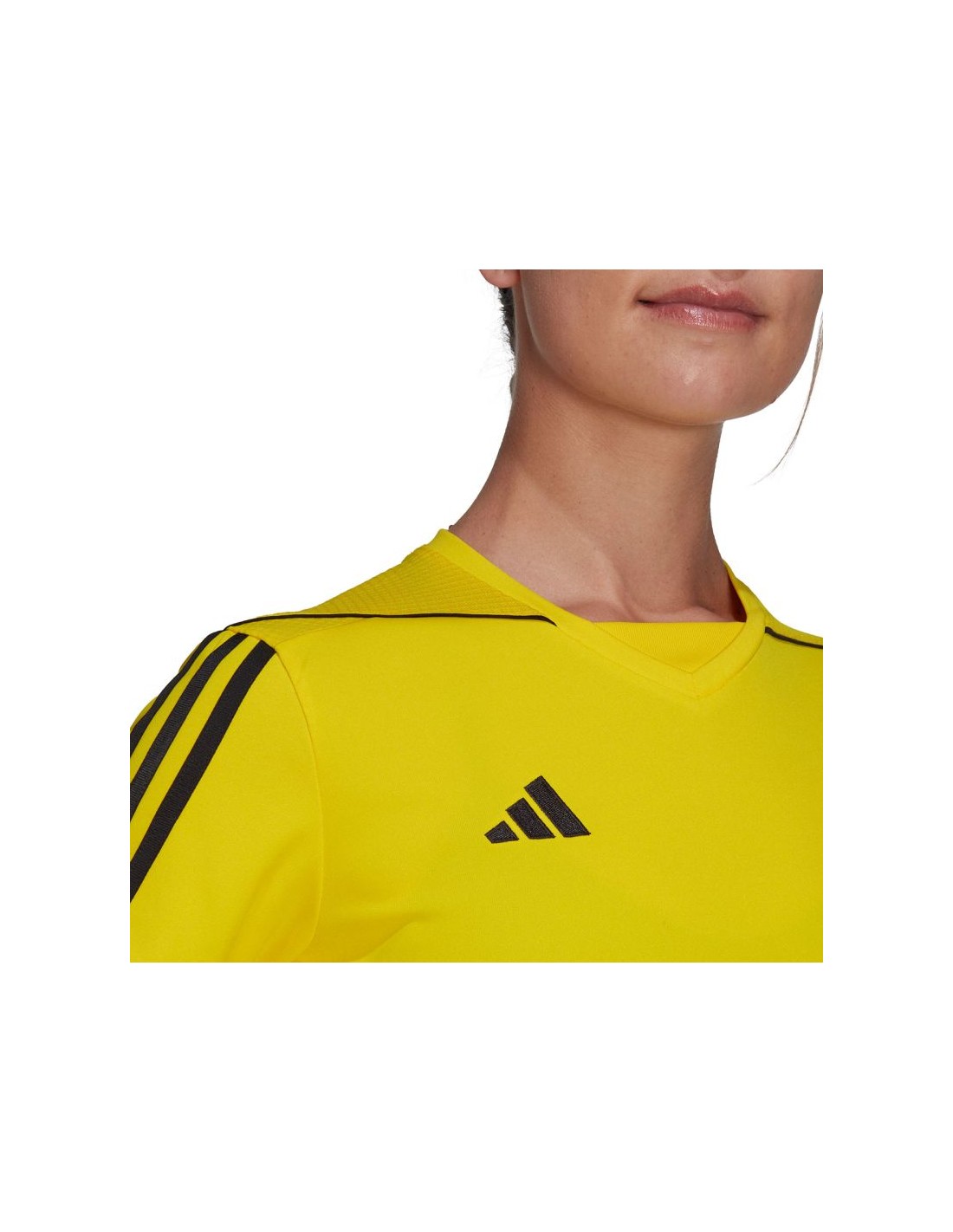 adidas Tiro 23 League Jersey Yellow HR4614 This adidas women\’s jersey is perfect for the game. Standard fit. V-neck. Mesh back panel. Aeroready technology wicks away excess moisture. Recycled fibers. Material: 100% recycled polyester