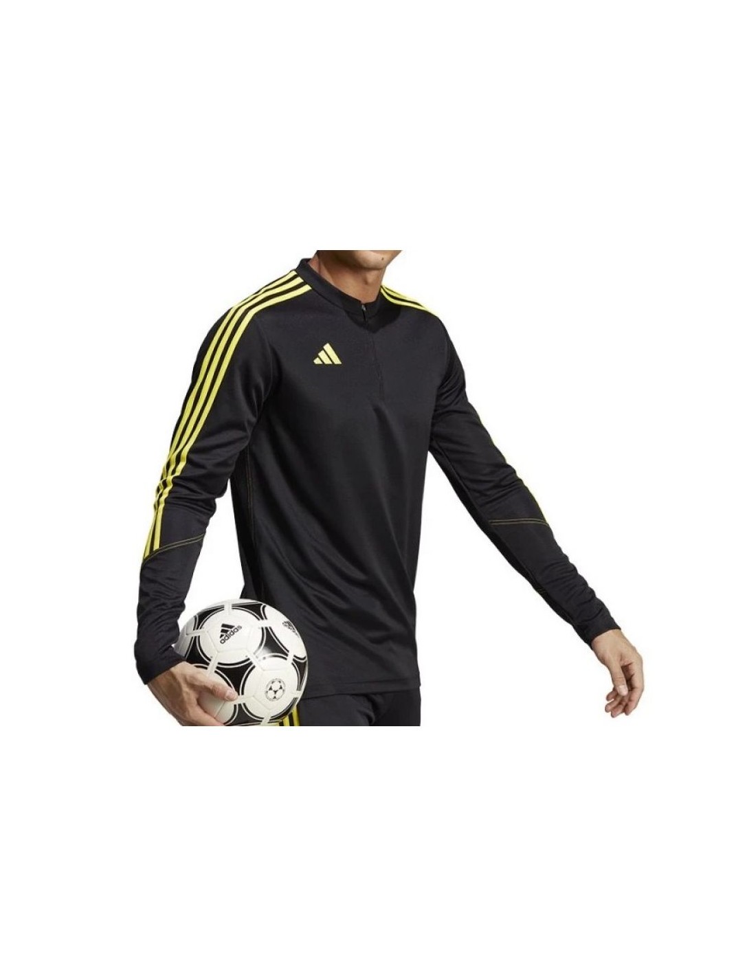 - Κίτρινες ρίγες στο πάνω μέρος των μανικιών και ένα διακριτικό λογότυπο τονίζουν το κλασικό ποδοσφαιρικό στυλ του φούτερ της adidas.