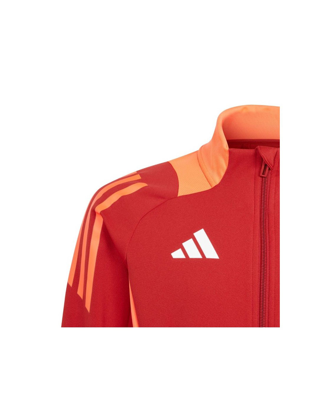 adidas Tiro 24 Competition Training Kids\’ Sweatshirt Red and Orange IR5500. This adidas football sweatshirt for kids is perfect for training. Stand-up collar. Full-length zipper. Slim fit. Aeroready technology helps keep skin dry and comfortable. Mesh panels on the shoulders and sides. Stripes on the upper sleeves. Material: 100% recycled polyester, densely knit