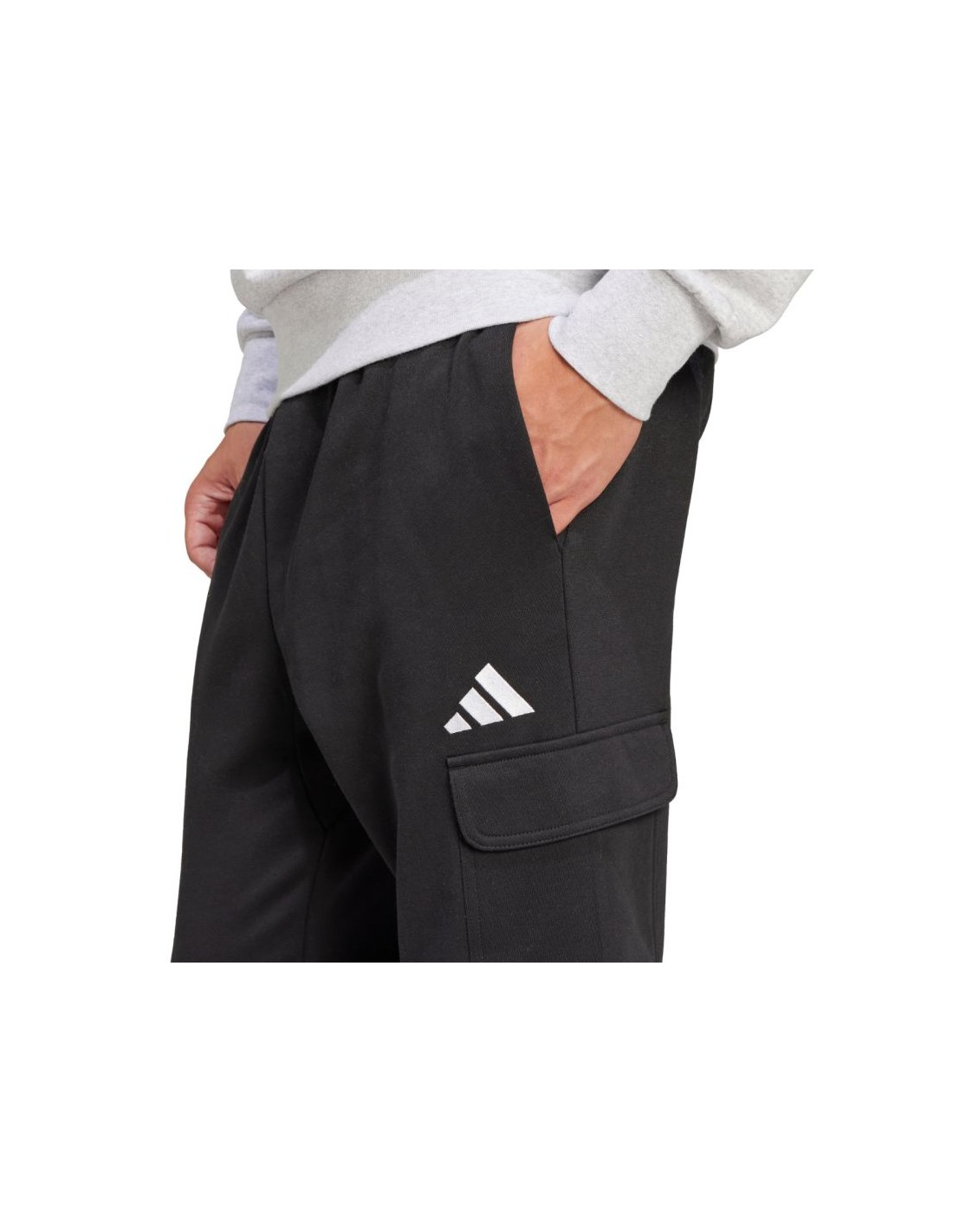 Men\’s adidas Essentials Feelcozy Fleece Cargo Pants Black JE3820